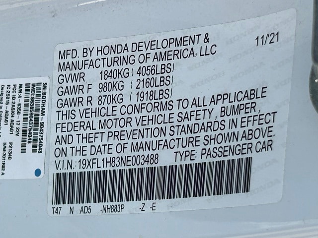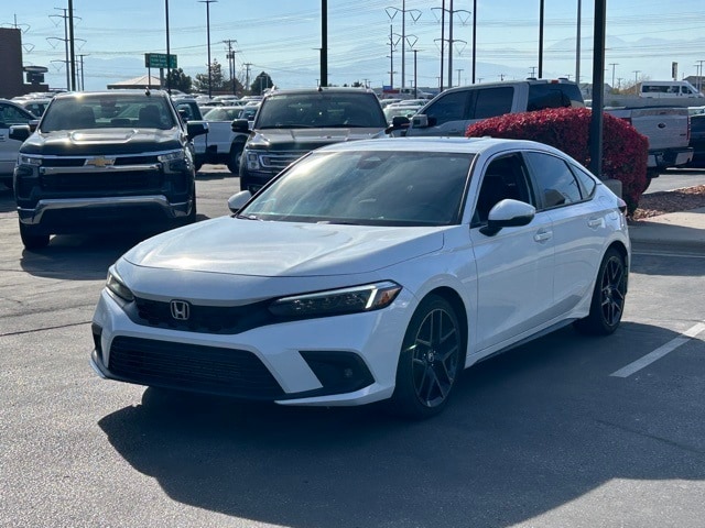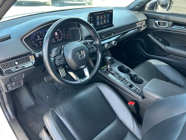 White 2022 Honda Civic Sport Touring FWD CVT 1.5L I4 DOHC 16V Black Leather.