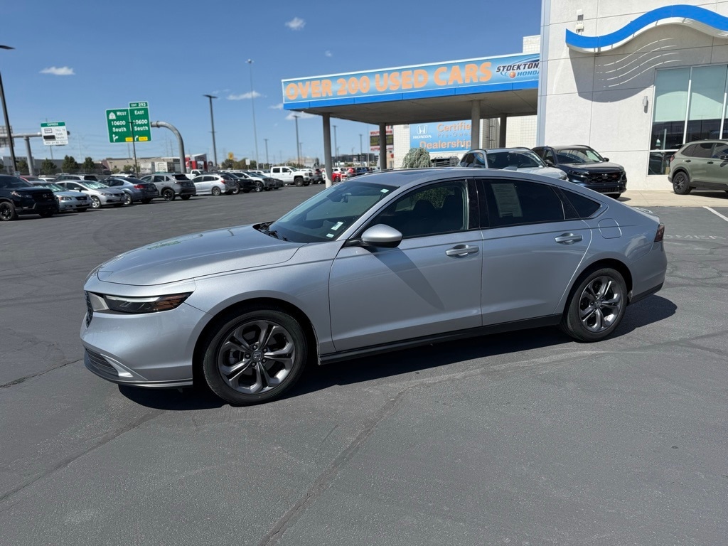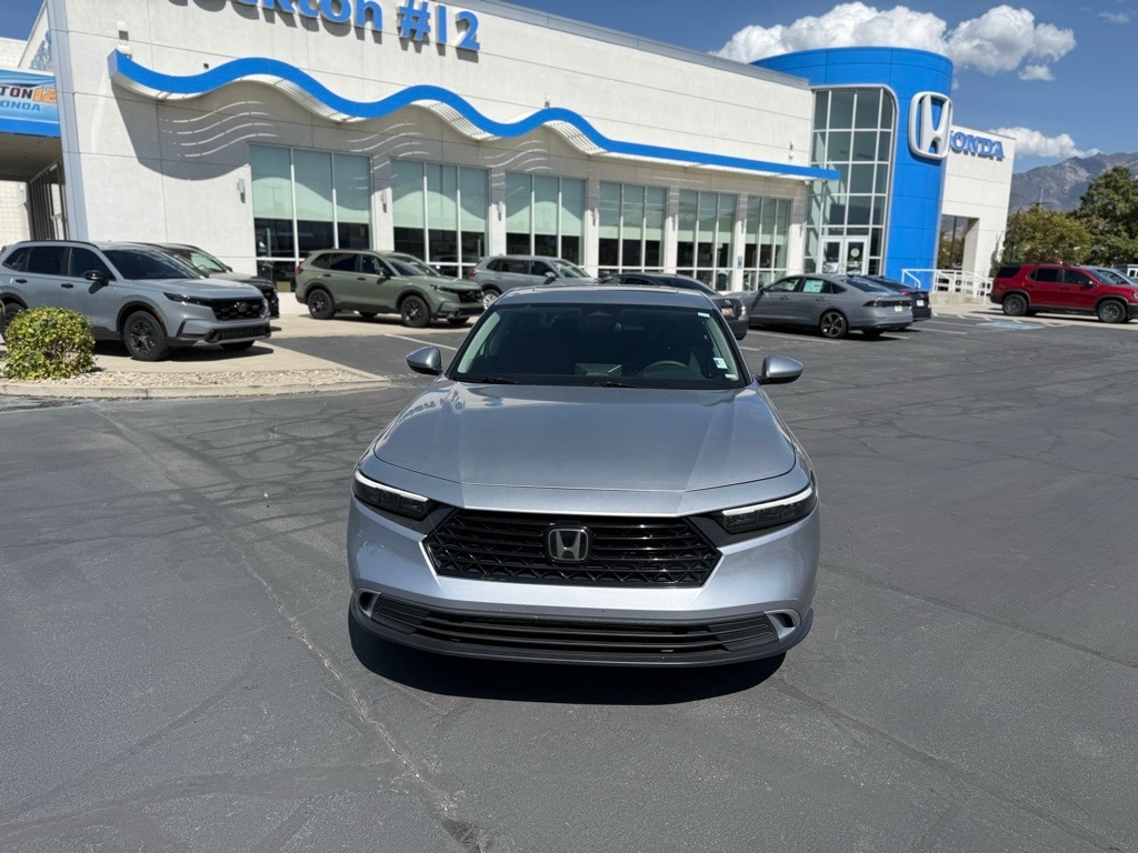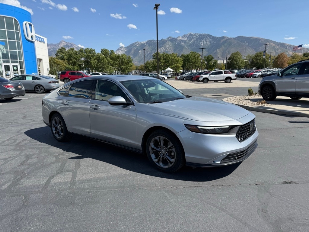 Accord EX, 4D Sedan, 1.5T I4 DOHC 16V Turbocharged VTEC, CVT, FWD, Silver, Black Cloth, 4-Wheel Disc Brakes, 8 Speakers, ABS brakes, Adaptive Cruise Control: Adaptive Cruise Control (ACC) with Low-Speed Follow, Air Conditioning, Alloy wheels, AM/FM radio, Apple CarPlay/Android Auto, Auto High-beam Headlights, Auto-dimming Rear-View mirror, Automatic temperature control, Brake assist, Bumpers: body-color, Compass, Delay-off headlights, Driver door bin, Driver vanity mirror, Dual front impact airbags, Dual front side impact airbags, Electronic Stability Control, Emergency communication system: HondaLink Assist, Exterior Parking Camera Rear, Fabric Seat Trim, Four wheel independent suspension, Front anti-roll bar, Front Bucket Seats, Front Center Armrest, Front dual zone A/C, Front reading lights, Fully automatic headlights, Heated door mirrors, Heated Front Bucket Seats, Heated front seats, Illuminated entry, Knee airbag, Lane departure: Lane Keeping Assist System (LKAS) active, Low tire pressure warning, Occupant sensing airbag, Outside temperature display, Overhead airbag, Overhead console, Panic alarm, Passenger door bin, Passenger vanity mirror, Power door mirrors, Power driver seat, Power moonroof, Power steering, Power windows, Radio data system, Radio: 180-Watt AM/FM Audio System, Rear anti-roll bar, Rear reading lights, Rear seat center armrest, Rear side impact airbag, Rear window defroster, Remote keyless entry, Security system, Speed control, Speed-sensing steering, Speed-Sensitive Wipers, Split folding rear seat, Steering wheel mounted audio controls, Tachometer, Telescoping steering wheel, Tilt steering wheel, Traction control, Trip computer, Variably intermittent wipers, Wheels: 17" x 7.5" Pewter Gray, Accord EX, 4D Sedan, 1.5T I4 DOHC 16V Turbocharged VTEC, CVT, FWD, Silver, Black Cloth.