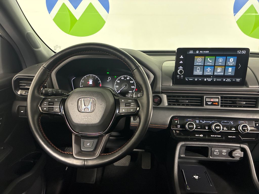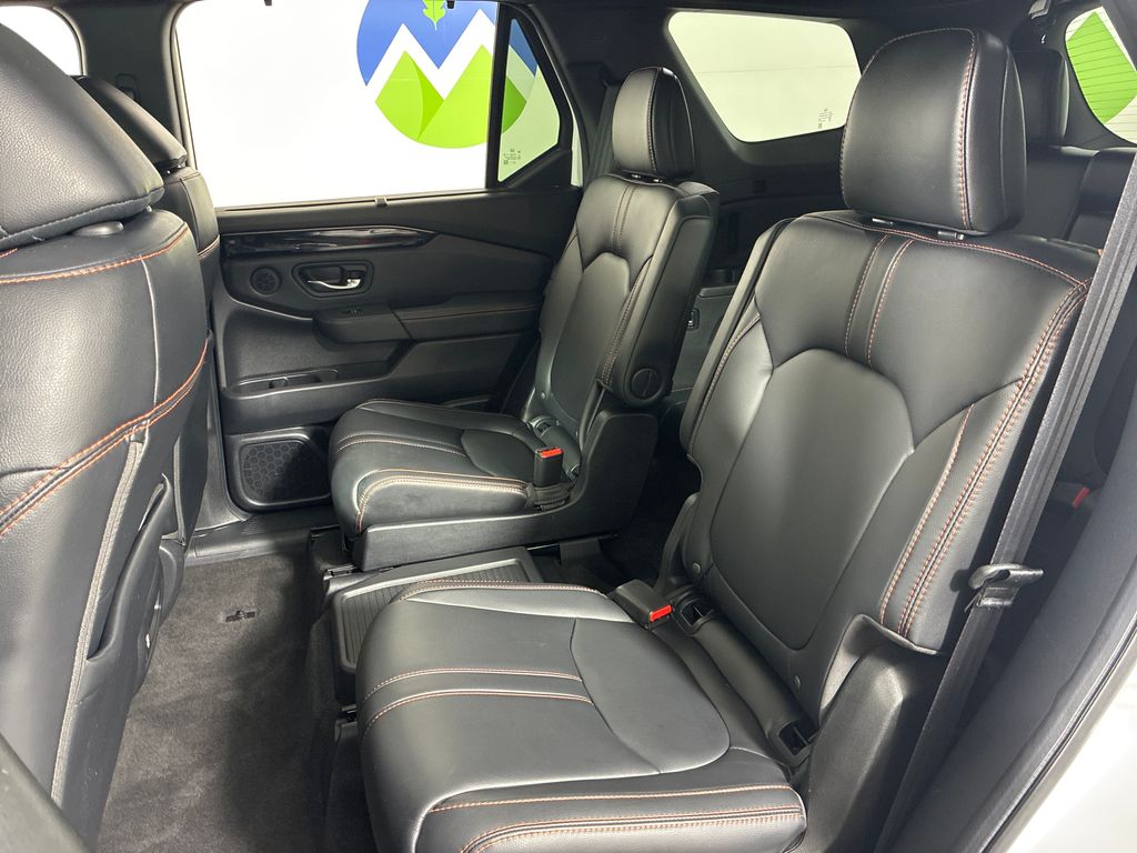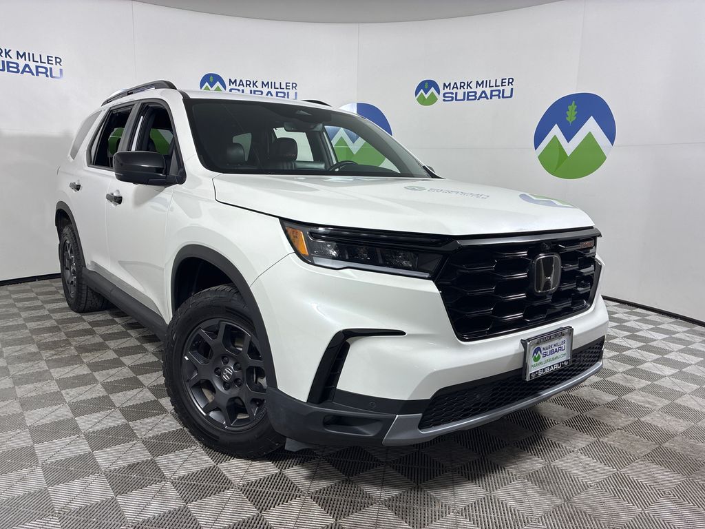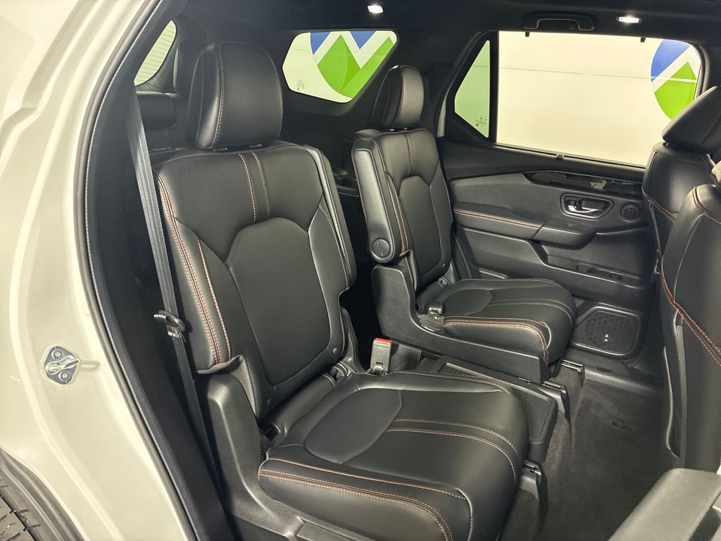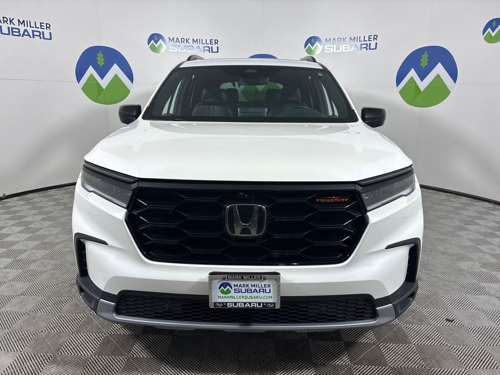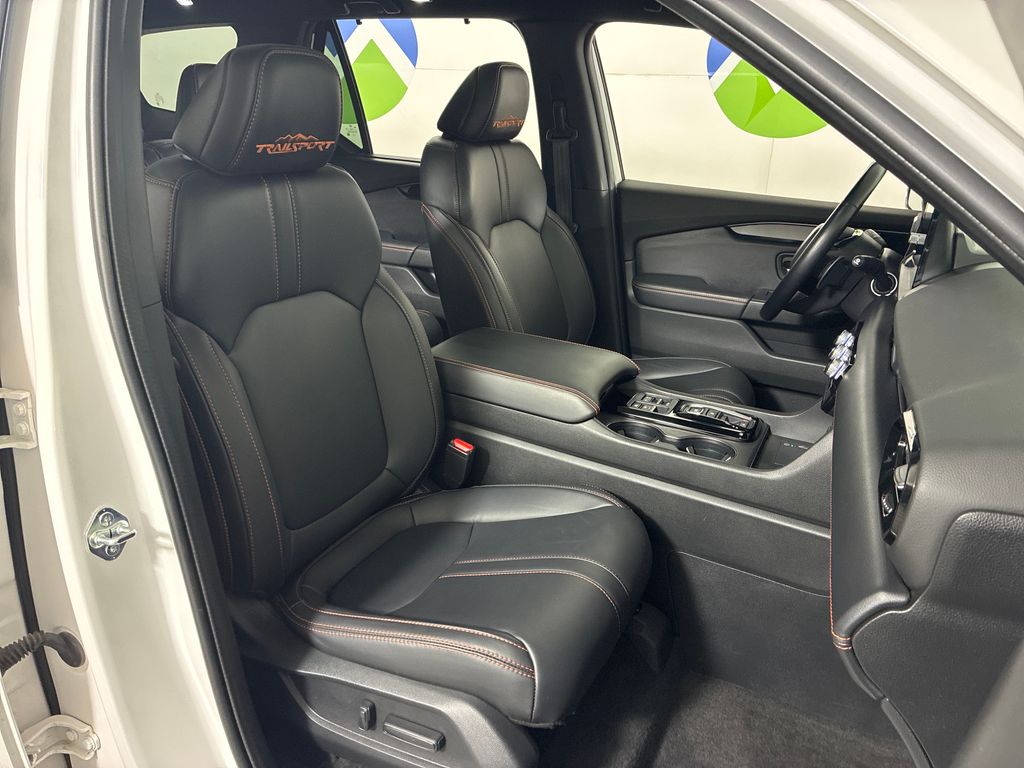 This 2024 White Honda Pilot TrailSport AWD is well equipped and includes these features and benefits: AWD, 3rd row seats: split-bench, 4-Wheel Disc Brakes, 9 Speakers, ABS brakes, Adaptive Cruise Control: Adaptive Cruise Control (ACC) with Low-Speed Follow, Air Conditioning, Alloy wheels, AM/FM radio: SiriusXM, Apple CarPlay/Android Auto, Auto High-beam Headlights, Auto-dimming Rear-View mirror, Automatic temperature control, Axle Ratio: 4.167, Blind Spot Information (BSI) System warning, Brake assist, Bumpers: body-color, Delay-off headlights, Driver door bin, Driver vanity mirror, Dual front impact airbags, Dual front side impact airbags, Durable Synthetic Leather Seat Trim, Electronic Stability Control, Emergency communication system: HondaLink Assist, Exterior Parking Camera Rear, Four wheel independent suspension, Front anti-roll bar, Front Bucket Seats, Front Center Armrest, Front dual zone A/C, Front fog lights, Front reading lights, Fully automatic headlights, Garage door transmitter: HomeLink, Heated door mirrors, Heated Front Bucket Seats, Heated front seats, Illuminated entry, Knee airbag, Lane departure: Lane Keeping Assist System (LKAS) active, Low tire pressure warning, Memory seat, Occupant sensing airbag, Outside temperature display, Overhead airbag, Overhead console, Panic alarm, Passenger door bin, Passenger vanity mirror, Power door mirrors, Power driver seat, Power Liftgate, Power moonroof, Power passenger seat, Power steering, Power windows, Radio data system, Radio: 245-Watt Audio System, Rear air conditioning, Rear anti-roll bar, Rear reading lights, Rear window defroster, Rear window wiper, Reclining 3rd row seat, Remote keyless entry, Security system, Speed control, Speed-sensing steering, Speed-Sensitive Wipers, Split folding rear seat, Spoiler, Steering wheel mounted audio controls, Tachometer, Telescoping steering wheel, Tilt steering wheel, Traction control, Trip computer, Turn signal indicator mirrors, Variably intermittent wipers, and Wheels: 18" Fully Painted Shark Gray w/Blk Lug Nuts.