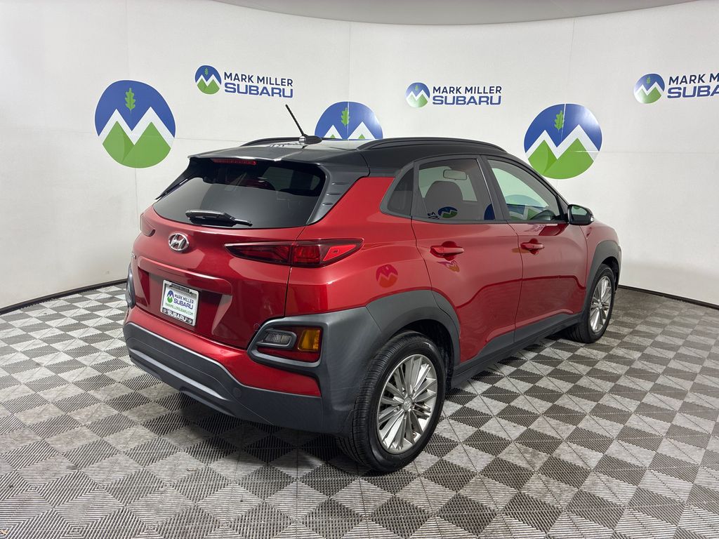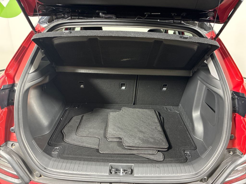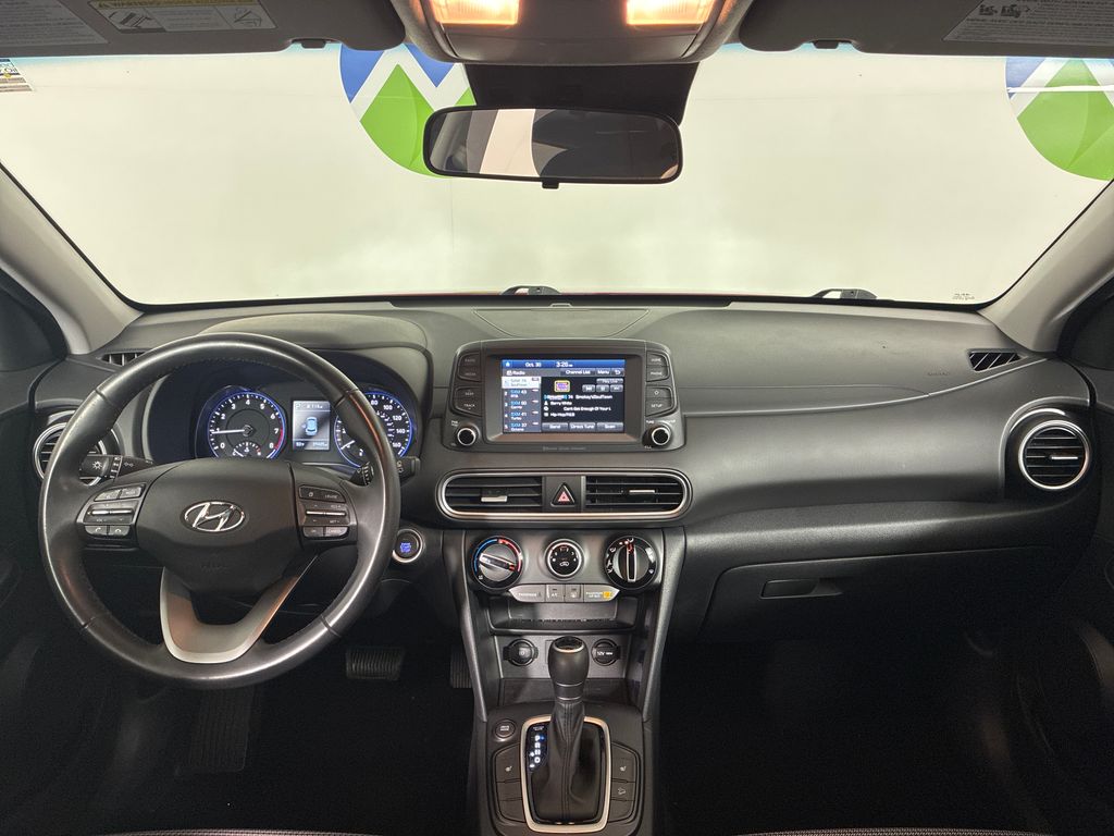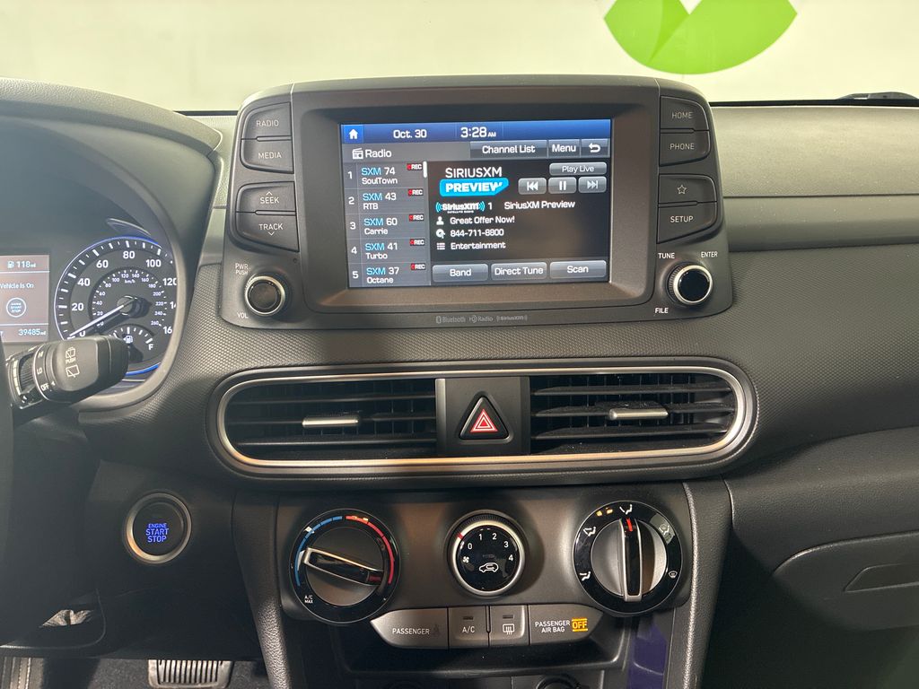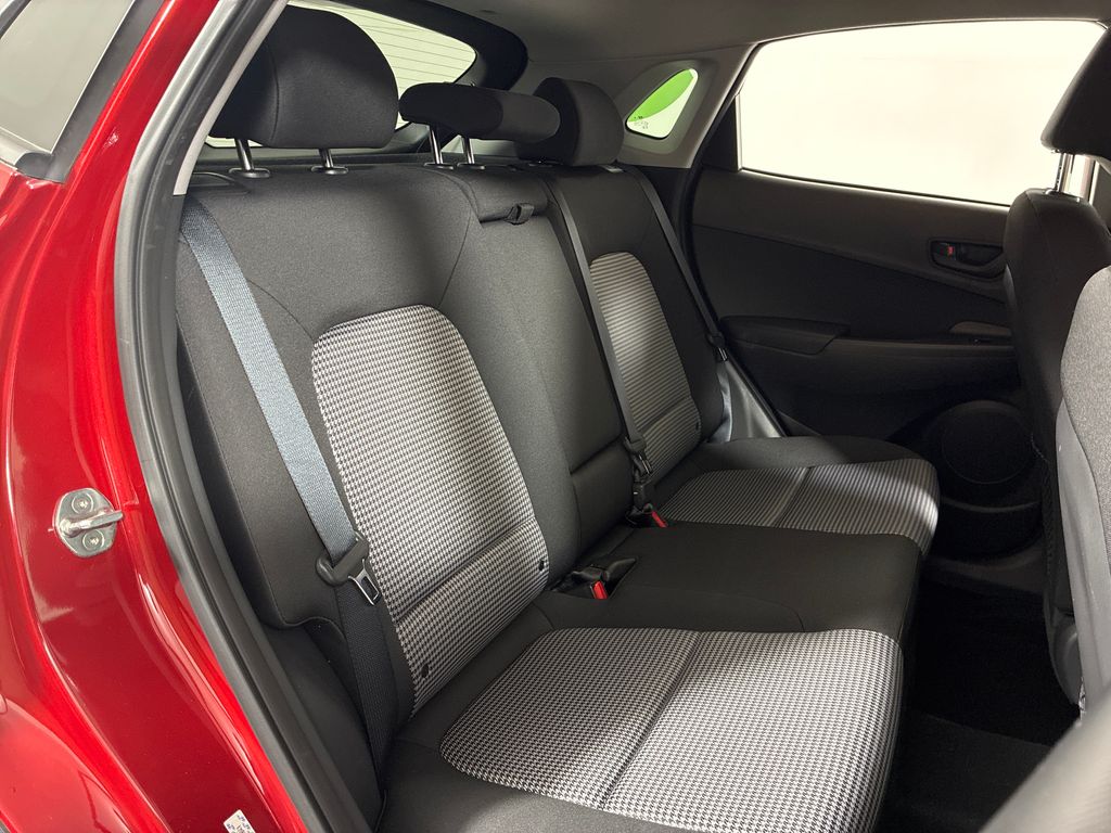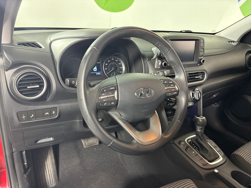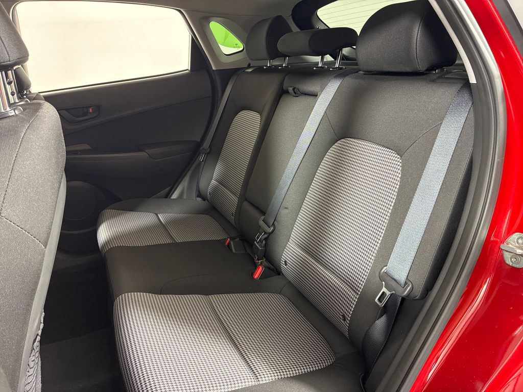 This 2019 Pulse Red w/Black Roof Hyundai Kona SEL FWD is well equipped and includes these features and benefits: 17" Alloy Wheels, 3.510 Axle Ratio, 4-Wheel Disc Brakes, 6 Speakers, ABS brakes, Air Conditioning, Alloy wheels, AM/FM radio: SiriusXM, Apple CarPlay & Android Auto, Brake assist, Bumpers: body-color, Cargo Tray, Carpeted Floor Mats, Cloth Seat Trim, Delay-off headlights, Driver door bin, Driver vanity mirror, Dual front impact airbags, Dual front side impact airbags, Electronic Stability Control, Exterior Parking Camera Rear, Front & Rear Mudguards, Front anti-roll bar, Front Bucket Seats, Front Center Armrest, Front reading lights, Front wheel independent suspension, Fully automatic headlights, Heated door mirrors, Heated Front Bucket Seats, Heated front seats, Illuminated entry, Leather Shift Knob, Leather steering wheel, Low tire pressure warning, Occupant sensing airbag, Outside temperature display, Overhead airbag, Overhead console, Panic alarm, Passenger door bin, Passenger vanity mirror, Power door mirrors, Power steering, Power windows, Radio: AM/FM/HD Radio/SiriusXM Audio System, Rear Bumper Applique, Rear seat center armrest, Rear window defroster, Rear window wiper, Remote keyless entry, Roof rack: rails only, Security system, Speed control, Speed-sensing steering, Split folding rear seat, Spoiler, Steering wheel mounted audio controls, Tachometer, Telescoping steering wheel, Tilt steering wheel, Traction control, Trip computer, Turn signal indicator mirrors, and Variably intermittent wipers.