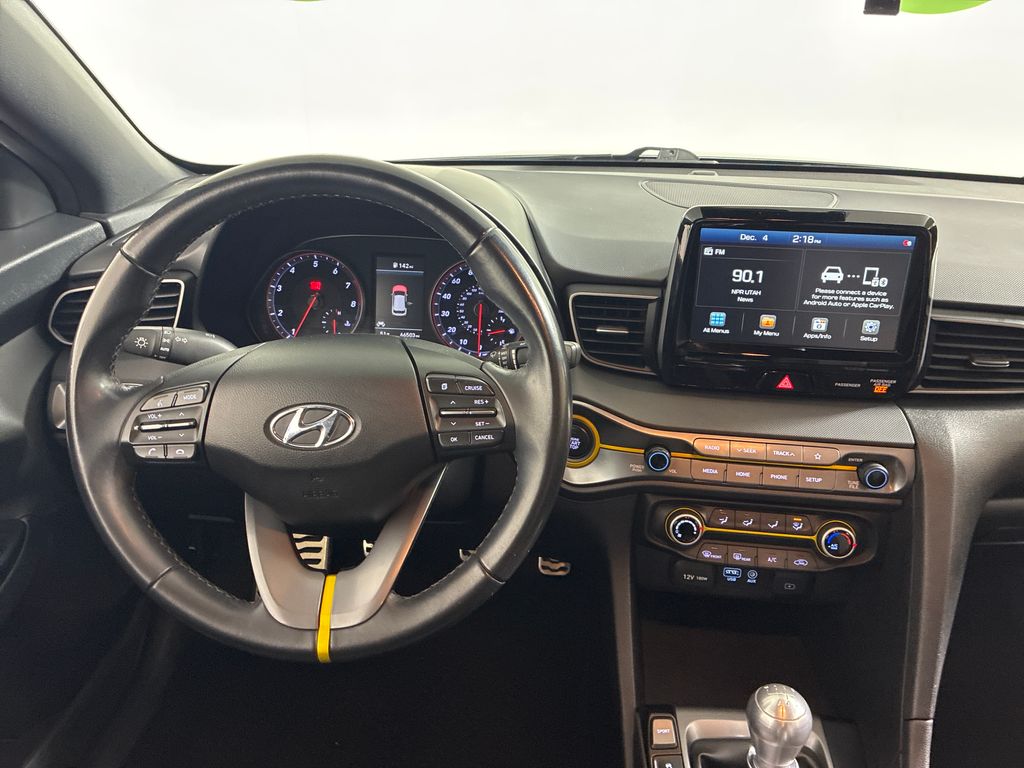 This 2020 Thunder Gray Hyundai Veloster Turbo R-Spec FWD is well equipped and includes these features and benefits: Option Group 01, 4-Wheel Disc Brakes, 8 Speakers, ABS brakes, Air Conditioning, Alloy wheels, AM/FM radio: SiriusXM, Apple CarPlay & Android Auto, Brake assist, Bumpers: body-color, Cargo Net, Delay-off headlights, Driver door bin, Driver vanity mirror, Dual front impact airbags, Dual front side impact airbags, Electronic Stability Control, Emergency communication system: Blue Link, Exterior Parking Camera Rear, Four wheel independent suspension, Front anti-roll bar, Front Bucket Seats, Front Center Armrest, Front reading lights, Fully automatic headlights, Heated door mirrors, Illuminated entry, Leather Shift Knob, Leather steering wheel, Low tire pressure warning, Occupant sensing airbag, Outside temperature display, Overhead airbag, Overhead console, Panic alarm, Passenger door bin, Passenger vanity mirror, Power door mirrors, Power steering, Power windows, Premium audio system: Infinity, Radio: AM/FM/SiriusXM 8" Display Audio, Rear anti-roll bar, Rear window defroster, Rear window wiper, Remote keyless entry, Security system, Speed control, Speed-sensing steering, Split folding rear seat, Spoiler, Steering wheel mounted audio controls, Tachometer, Telescoping steering wheel, Tilt steering wheel, Traction control, Trip computer, Turbo Cloth Seat Trim, Variably intermittent wipers, Wheel Locks, and Wheels: 18" x 7.5J Alloy (B-Type)
