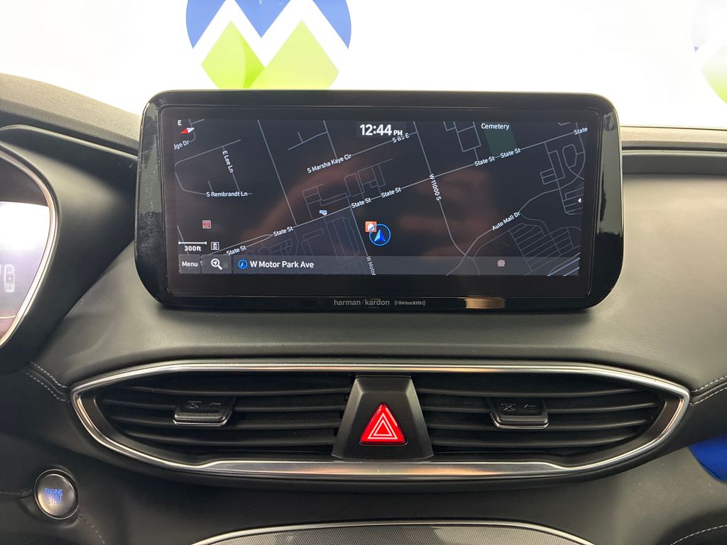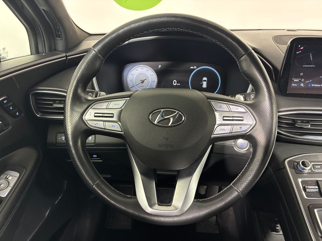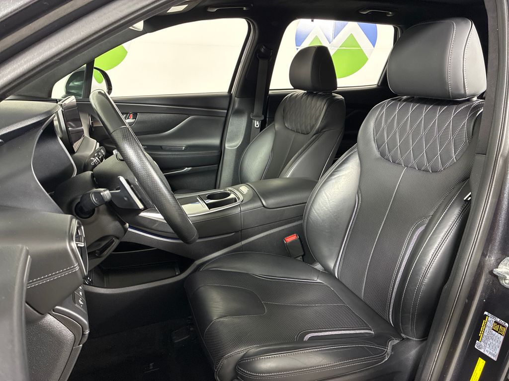 This 2021 Portofino Gray Hyundai Santa Fe Calligraphy AWD is well equipped and includes these features and benefits: Option Group 01, AWD, Black Leather, 12 Speakers, 4-Wheel Disc Brakes, ABS brakes, Air Conditioning, Alloy wheels, AM/FM radio: SiriusXM, Apple CarPlay & Android Auto, Auto High-beam Headlights, Auto-dimming Rear-View mirror, Automatic temperature control, Axle Ratio: 3.316, Brake assist, Bumpers: body-color, Carpeted Floor Mats, Delay-off headlights, Driver door bin, Driver vanity mirror, Dual front impact airbags, Dual front side impact airbags, Electronic Stability Control, Emergency communication system, Four wheel independent suspension, Front anti-roll bar, Front Bucket Seats, Front Center Armrest, Front dual zone A/C, Front reading lights, Fully automatic headlights, Garage door transmitter: HomeLink, harman/kardon® Speakers, Heads-Up Display, Heated & Ventilated Front Bucket Seats, Heated door mirrors, Heated front seats, Heated rear seats, Heated steering wheel, Illuminated entry, Leather steering wheel, Low tire pressure warning, Memory seat, Navigation System, Occupant sensing airbag, Outside temperature display, Overhead airbag, Overhead console, Panic alarm, Passenger door bin, Passenger vanity mirror, Power door mirrors, Power driver seat, Power Liftgate, Power moonroof, Power passenger seat, Power steering, Power windows, Quilted Nappa Leather Seat Trim, Radio: AM/FM/MP3 Harman Kardon Display Audio, Rain sensing wipers, Rear anti-roll bar, Rear seat center armrest, Rear window defroster, Rear window wiper, Remote keyless entry, Security system, Speed control, Speed-sensing steering, Split folding rear seat, Spoiler, Steering wheel mounted audio controls, Tachometer, Telescoping steering wheel, Tilt steering wheel, Traction control, Trip computer, Turn signal indicator mirrors, Variably intermittent wipers, Ventilated front seats, and Wheel Locks.