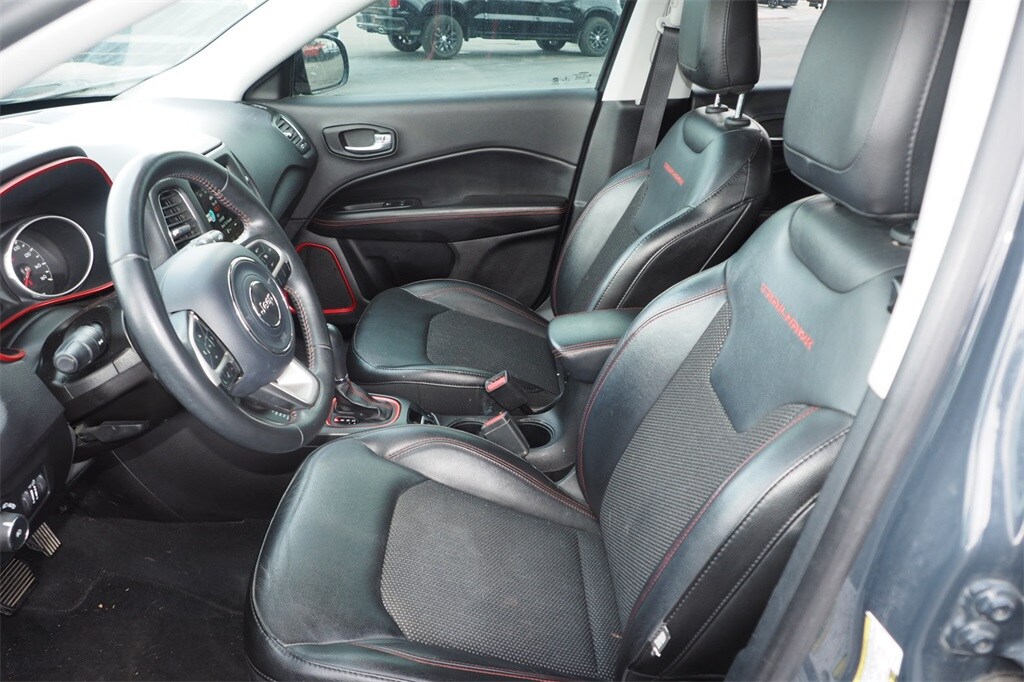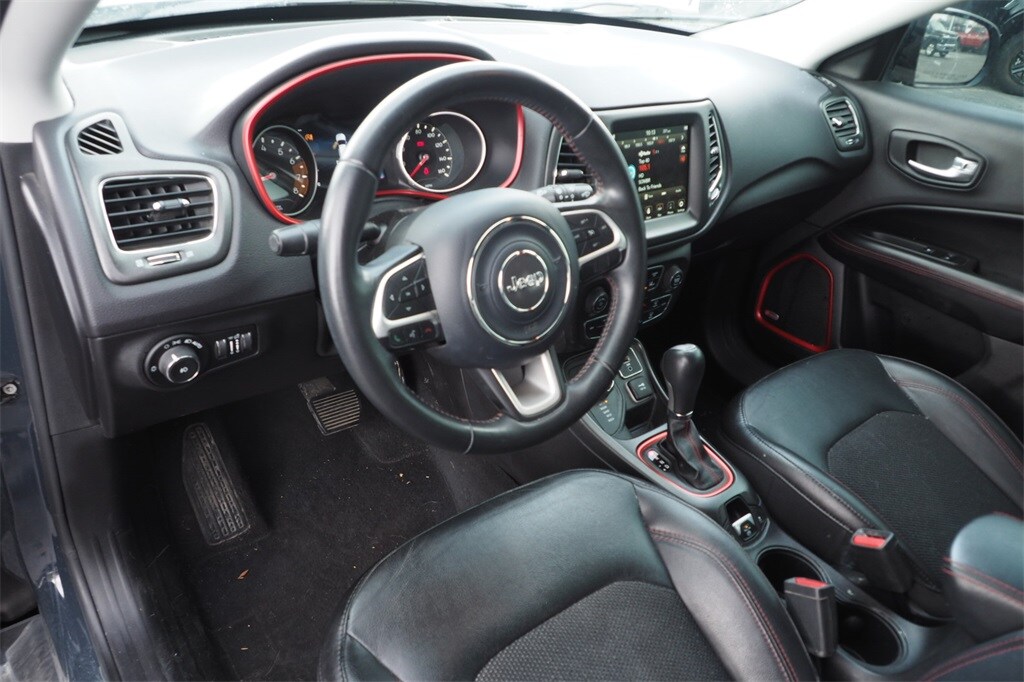 Rhino Clearcoat 2018 Jeep Compass Trailhawk 4WD 9-Speed Automatic 2.4L I4 4WD, 4-Way Power Lumbar Adjust, 7 & 4 Pin Wiring Harness, Advanced Safety & Lighting Group, Auto High Beam Headlamp Control, Auto-Dimming Rear-View Mirror, Bi-Xenon High-Intensity Discharge Headlamps, Blind Spot & Cross Path Detection, Class III Receiver Hitch, Full Speed FWD Collision Warn Plus, Lane Departure Warning Plus, Navigation Group, ParkSense Rear Park Assist System, Popular Equipment Group, Power 8-Way Driver/Manual 6-Way Passenger Seats, Quick Order Package 27E, Radio: Uconnect 4C Nav w/8.4" Display, Rain Sensitive/Intermittent Wipers, Remote Start System, Safe & Security Group, Security Alarm, Trailer Tow Group.