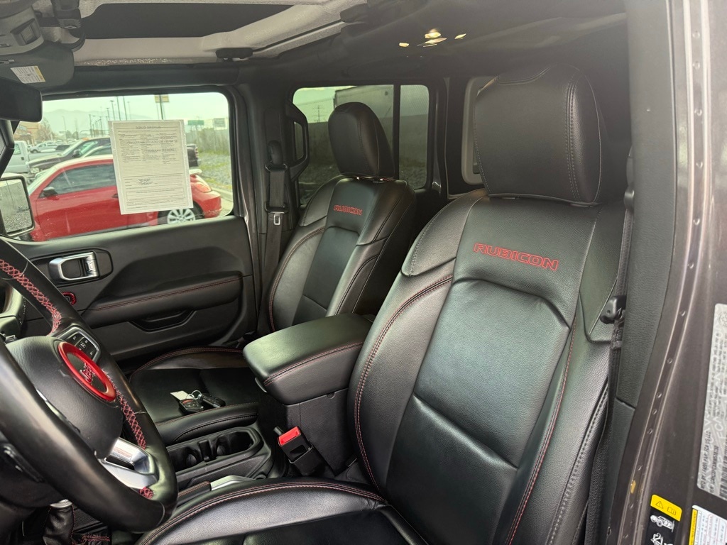 Wrangler Unlimited Rubicon, 4D Sport Utility, 3.6L V6 24V VVT, 8-Speed Automatic, 4WD, Granite Crystal Metallic Clearcoat, Black Cloth, 1-Year SiriusXM Guardian Trial, 240 Amp Alternator, 4-Wheel Disc Brakes, 4.10 Rear Axle Ratio, 4G LTE Wi-Fi Hot Spot, 5-Year SiriusXM Traffic Service, 5-Year SiriusXM Travel Link Service, 7 & 4 Pin Wiring Harness, 700 Amp Maintenance Free Battery, 8 Speakers, 8.4" Radio & Premium Audio Group, 8.4" Touchscreen Display, ABS brakes, Air Conditioning, Alloy wheels, Alpine Premium Audio System, AM/FM radio: SiriusXM, Apple CarPlay/Android Auto, Auto-Dimming Rear-View Mirror, Automatic temperature control, Aux Battery, Auxiliary Switches, Blind Spot & Cross Path Detection, Body Color 3-Piece Hard Top, Body Color Fender Flares, Brake assist, Class II Receiver Hitch, Cold Weather Group, Compass, Daytime Running Lamps LED Accents, Delay-off headlights, Driver door bin, Driver vanity mirror, Dual front impact airbags, Dual front side impact airbags, Electronic Stability Control, Emergency/Assistance Call, For Details, Visit DriveUconnect.com, Front anti-roll bar, Front Bucket Seats, Front Center Armrest w/Storage, Front dual zone A/C, Front fog lights, Front LED Fog Lamps, Front reading lights, Fully automatic headlights, Garage door transmitter, GPS Navigation, HD Radio, Heated door mirrors, Heated Front Seats, Heated Steering Wheel, Illuminated entry, Integrated roll-over protection, Leather steering wheel, LED Lighting Group, LED Premium Reflector Headlamps, LED Taillamps, Low tire pressure warning, MOPAR Hardtop Headliner, Non-Lock Fuel Cap w/o Discriminator, Occupant sensing airbag, Off-Road Info Pages, Outside temperature display, Panic alarm, ParkSense Rear Park Assist System, ParkView Rear Back-Up Camera, Passenger door bin, Passenger vanity mirror, Performance Suspension, Power door mirrors, Power steering, Power windows, Premium Cloth Low-Back Bucket Seats, Quick Order Package 25R, Radio data system, Radio: Uconnect 4 w/7" Display, Radio: Uconnect 4C Nav w/8.4" Display, Rear anti-roll bar, Rear reading lights, Remote keyless entry, Remote Proximity Keyless Entry, Remote Start System, Safety Group, Security system, SiriusXM Traffic Plus, SiriusXM Travel Link, Speed control, Split folding rear seat, Steel Bumper Group, Steel Front Bumper, Steel Rear Bumper, Steering wheel mounted audio controls, Stop-Start Dual Battery System, Tachometer, Telescoping steering wheel, Tilt steering wheel, Traction control, Trailer Tow & HD Electrical Group, Trip computer, Variably intermittent wipers, Voltmeter, Wheels: 17" x 7.5" Black w/Machined Lip, Wheels: 17" x 7.5" Machined w/Black Pockets, Wrangler Unlimited Rubicon, 4D Sport Utility, 3.6L V6 24V VVT, 8-Speed Automatic, 4WD, Granite Crystal Metallic Clearcoat, Black Cloth.