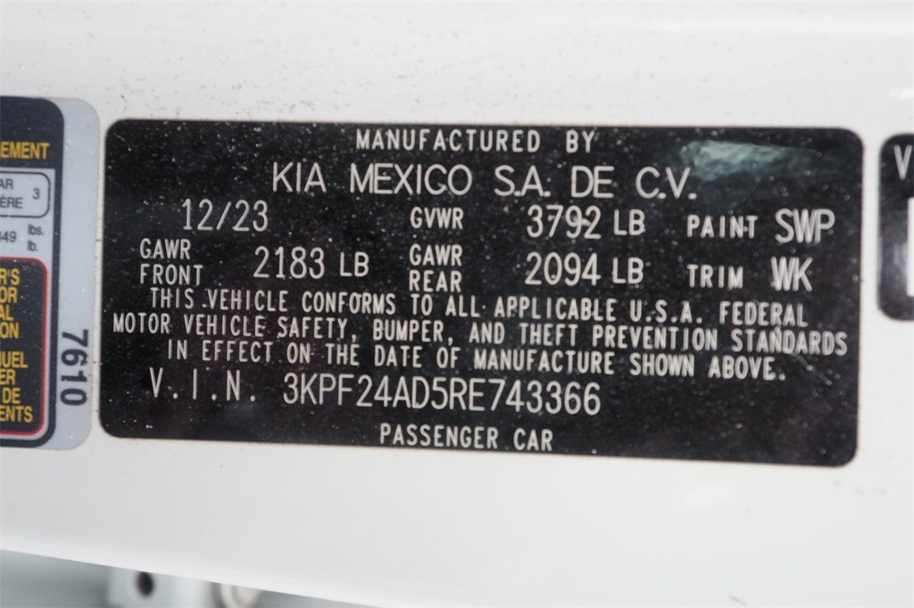 Snow White Pearl 2024 Kia Forte LXS FWD CVT 2.0L I4 MPI CLEAN CARFAX, 1-OWNER.