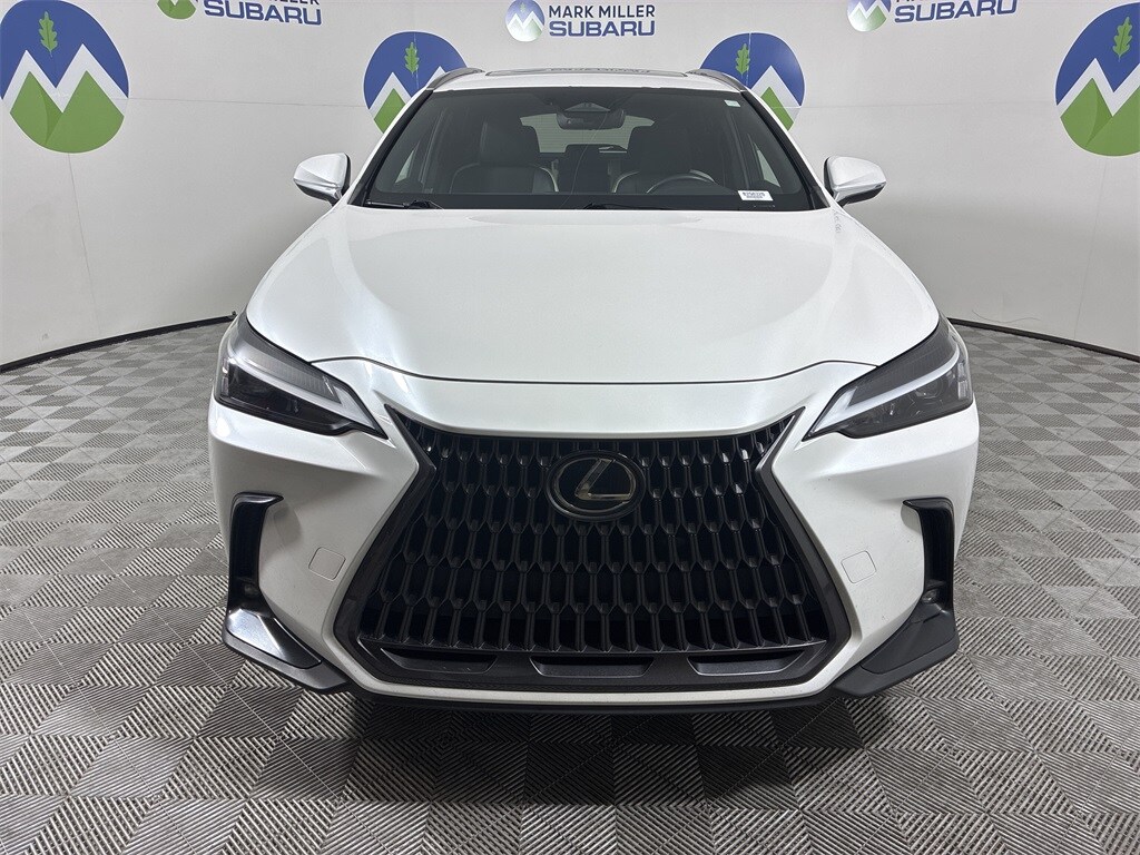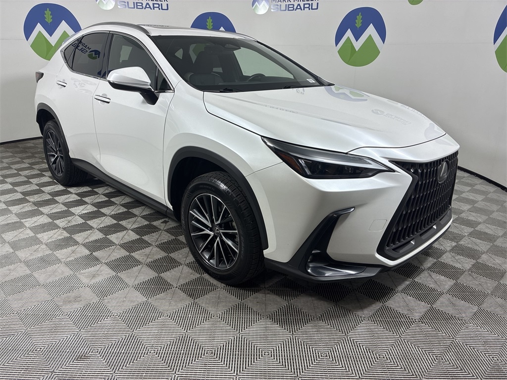 This 2023 White Lexus NX 350h Base AWD is well equipped and includes these features and benefits: 2.5L I4 DOHC 16V, 10 Speakers, 18" Wheels, 4-Wheel Disc Brakes, ABS brakes, Air Conditioning, Alloy wheels, AM/FM radio: SiriusXM, Anti-whiplash front head restraints, Auto High-beam Headlights, Auto-dimming door mirrors, Auto-dimming Rear-View mirror, Automatic temperature control, Axle Ratio: 10.781, Brake assist, Bumpers: body-color, Delay-off headlights, Driver door bin, Driver vanity mirror, Dual front impact airbags, Dual front side impact airbags, Electronic Stability Control, Emergency communication system: Safety Connect (up to 10-year trial subscription included), Exterior Parking Camera Rear, Four wheel independent suspension, Front anti-roll bar, Front Bucket Seats, Front Center Armrest, Front dual zone A/C, Front fog lights, Front reading lights, Fully automatic headlights, Garage door transmitter: HomeLink, Heated door mirrors, Heated Front Bucket Seats, Heated front seats, Illuminated entry, Knee airbag, Leather Shift Knob, Low tire pressure warning, Navigation system: Drive Connect Cloud Navigation (subscription required), NuLuxe Seat Trim, Occupant sensing airbag, Outside temperature display, Overhead airbag, Overhead console, Panic alarm, Passenger door bin, Passenger vanity mirror, Power door mirrors, Power driver seat, Power passenger seat, Power steering, Power windows, Radio data system, Radio: 10-Speaker Sound System, Rear anti-roll bar, Rear reading lights, Rear seat center armrest, Rear window defroster, Rear window wiper, Remote keyless entry, Roof rack: rails only, Security system, Speed control, Speed-sensing steering, Split folding rear seat, Spoiler, Steering wheel mounted audio controls, Tachometer, Telescoping steering wheel, Tilt steering wheel, Traction control, Trip computer, Turn signal indicator mirrors, Variably intermittent wipers, and Wireless Apple CarPlay/Wireless Android Auto.