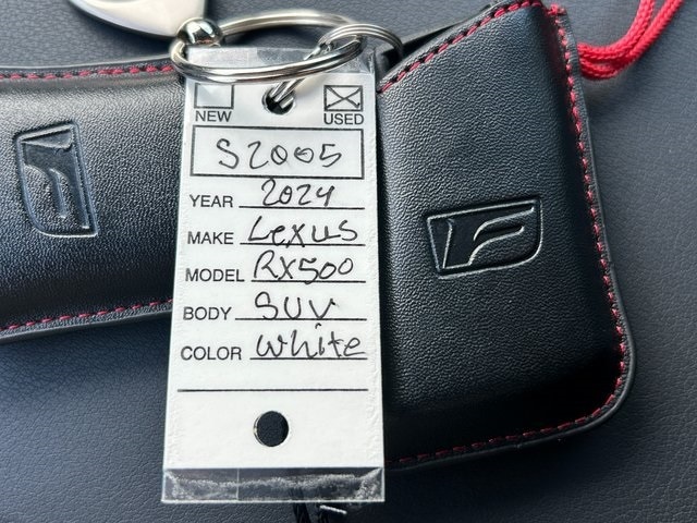 White 2024 Lexus RX 500h F SPORT Performance AWD 6-Speed Automatic 2.4L I4 PDI Hybrid Turbocharged DOHC 16V LEV3-SULEV30 274hp 2.4L I4 PDI Hybrid Turbocharged DOHC 16V LEV3-SULEV30 274hp, AWD, Leather.