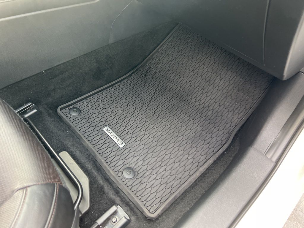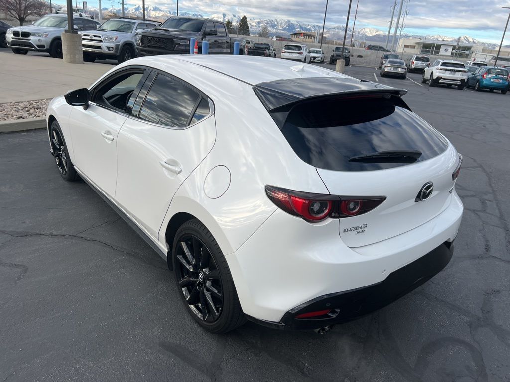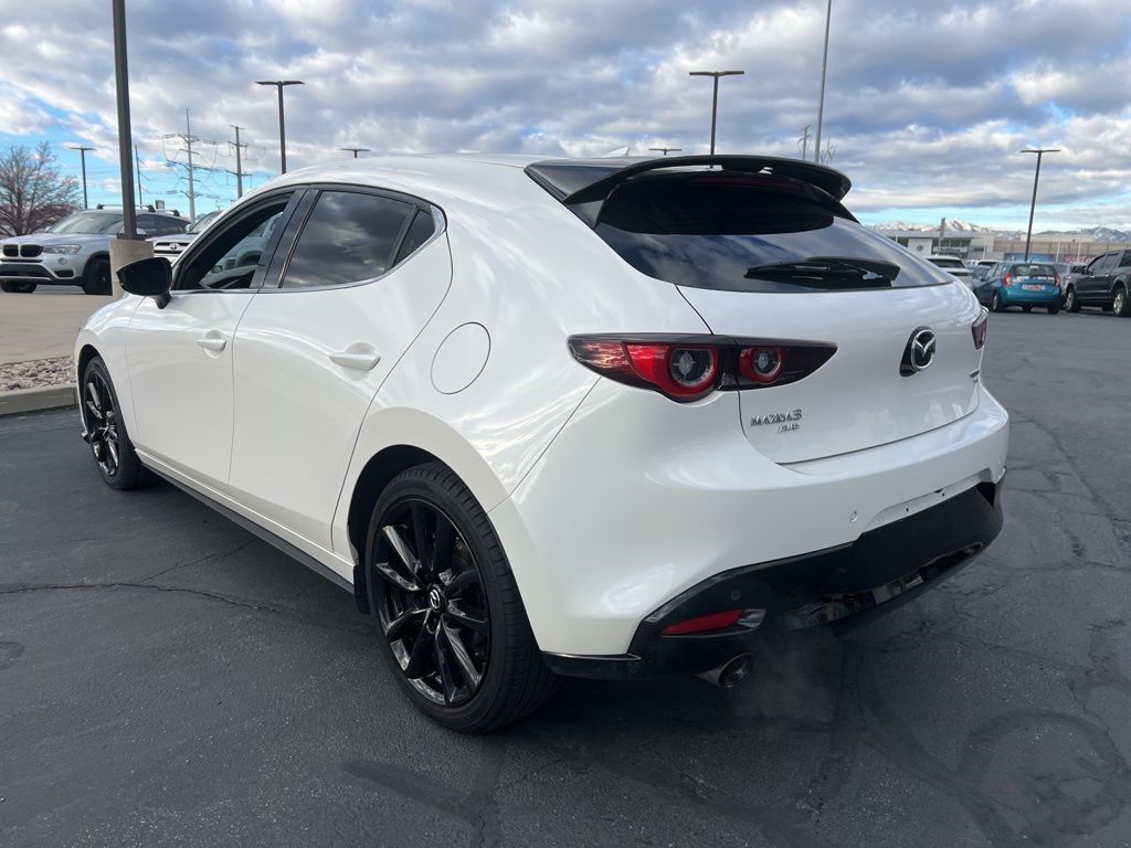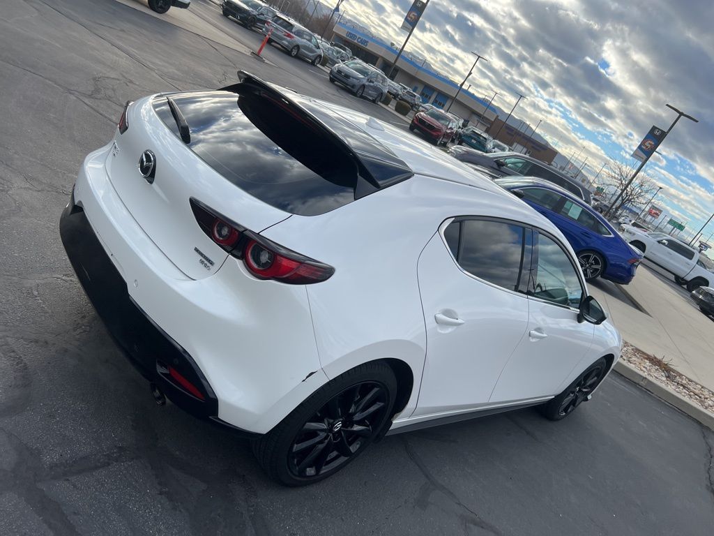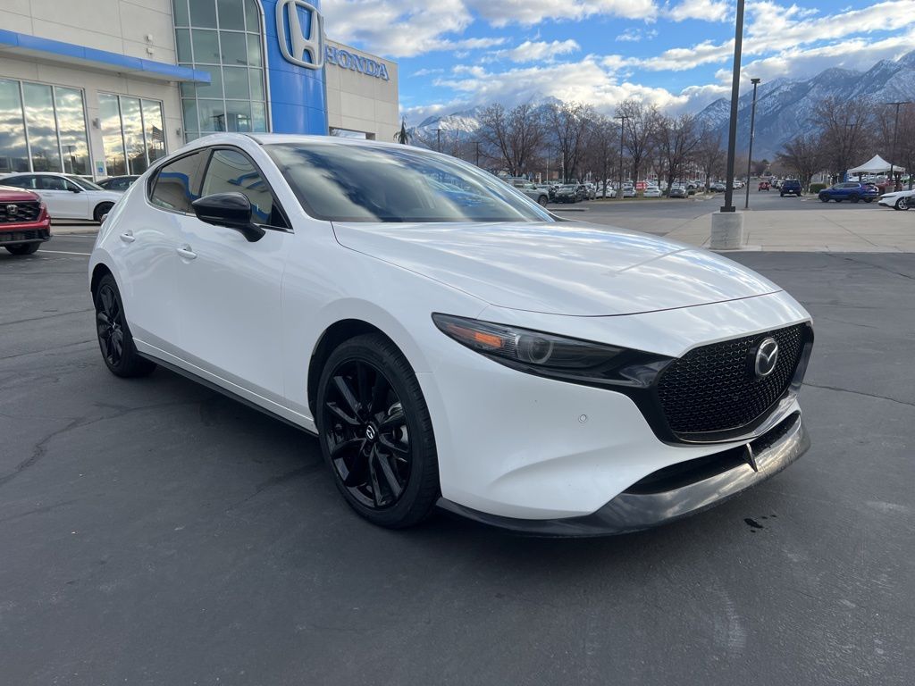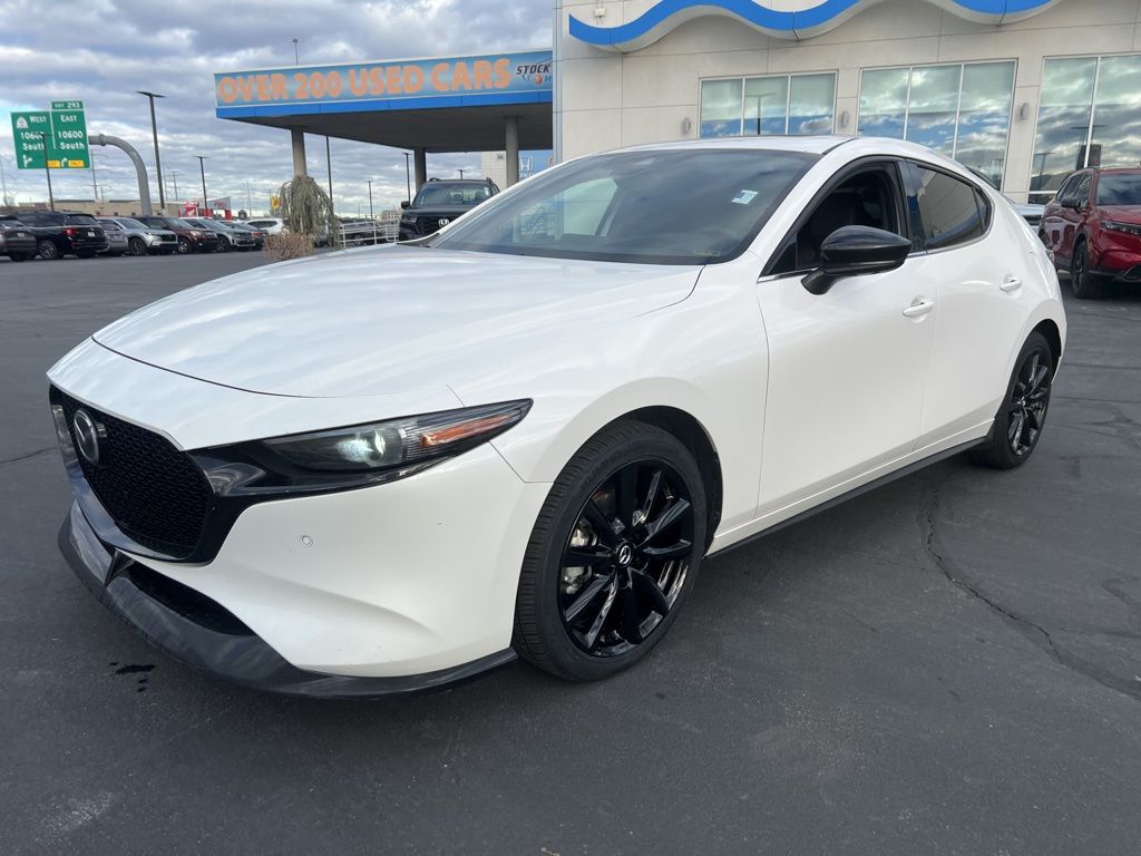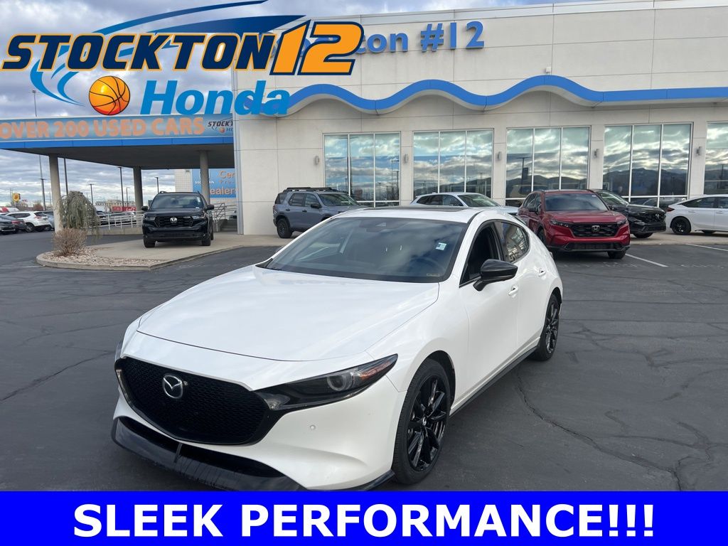 Mazda3 2.5 Turbo Premium Plus Package, 4D Hatchback, I4, 6-Speed Automatic, AWD, Snowflake White Pearl Mica, Black Leather, 12 Speakers, 4-Wheel Disc Brakes, ABS brakes, Air Conditioning, Alloy wheels, AM/FM radio: SiriusXM, AppLink/Apple CarPlay and Android Auto, Auto High-beam Headlights, Auto-dimming door mirrors, Auto-dimming Rear-View mirror, Automatic temperature control, Black Lug Nuts & Black Wheel Locks, Brake assist, Bumpers: body-color, Compass, Delay-off headlights, Driver door bin, Driver vanity mirror, Dual front impact airbags, Dual front side impact airbags, Electronic Stability Control, Emergency communication system: Mazda Connected Services (3-year complimentary trial included), Front anti-roll bar, Front Bucket Seats, Front Center Armrest, Front dual zone A/C, Front reading lights, Front wheel independent suspension, Fully automatic headlights, Garage door transmitter: HomeLink, Heads-Up Display, Heated door mirrors, Heated Front Bucket Seats, Heated front seats, Heated steering wheel, Illuminated entry, Knee airbag, Leather Seat Trim, Leather Shift Knob, Leather steering wheel, Low tire pressure warning, MAZDA CONNECT Infotainment System, Memory seat, Navigation System, Occupant sensing airbag, Outside temperature display, Overhead airbag, Overhead console, Panic alarm, Passenger door bin, Passenger vanity mirror, Power door mirrors, Power driver seat, Power moonroof, Power steering, Power windows, Radio data system, Radio: AM/FM/HD Audio System, Rain sensing wipers, Rear seat center armrest, Rear side impact airbag, Rear window defroster, Rear window wiper, Remote keyless entry, Snowflake White Pearl Mica Paint Charge, Speed control, Speed-sensing steering, Split folding rear seat, Spoiler, Steering wheel mounted audio controls, Tachometer, Telescoping steering wheel, Tilt steering wheel, Traction control, Trip computer, Turn signal indicator mirrors, Variably intermittent wipers, Wheels: 18" x 7J Aluminum Alloy, Mazda3 2.5 Turbo Premium Plus Package, 4D Hatchback, I4, 6-Speed Automatic, AWD, Snowflake White Pearl Mica, Black Leather.