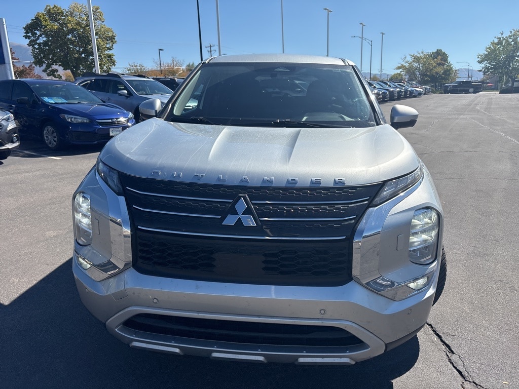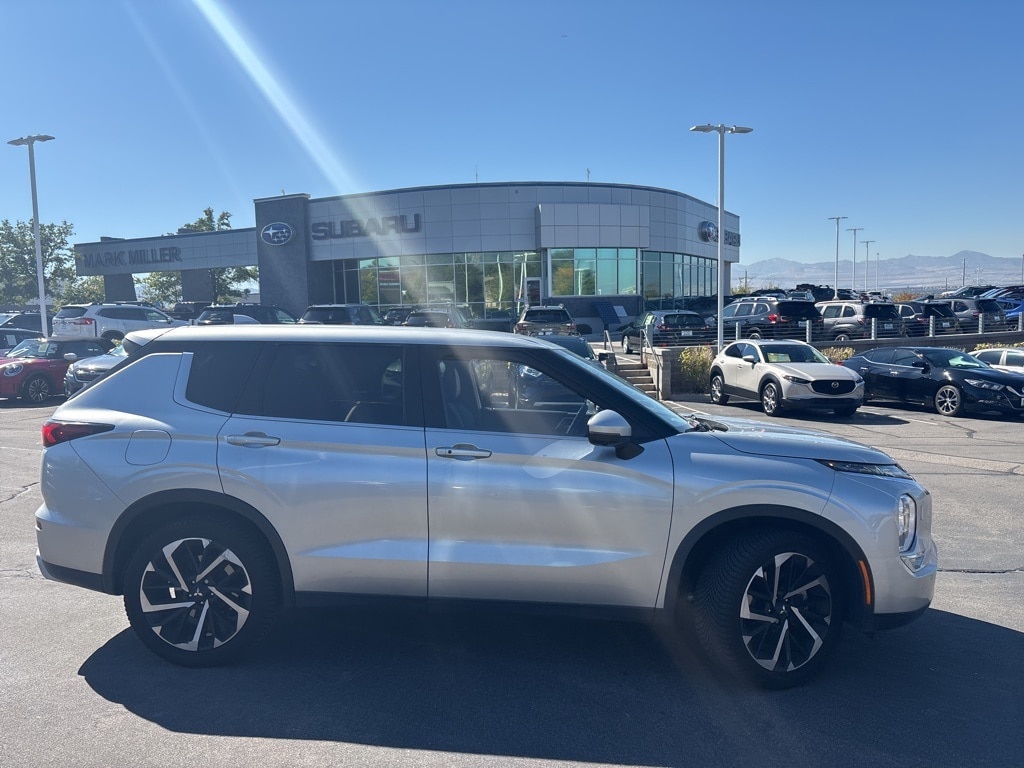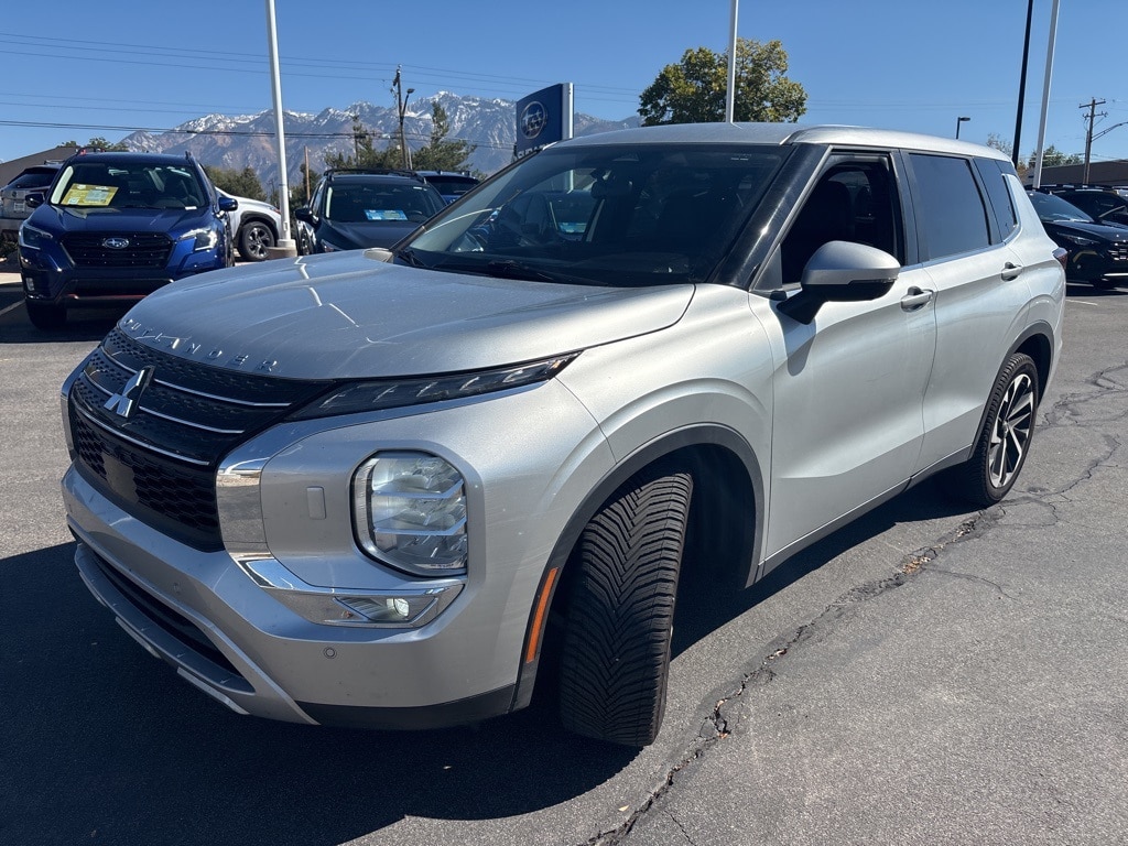 This 2022 Silver Mitsubishi Outlander SE 4WD is well equipped and includes these features and benefits: 4WD, 3rd row seats: split-bench, 4-Wheel Disc Brakes, ABS brakes, Air Conditioning, Alloy wheels, AM/FM radio: SiriusXM, Android Auto & Apple CarPlay, Auto High-beam Headlights, Automatic temperature control, Brake assist, Bumpers: body-color, Driver door bin, Driver vanity mirror, Dual front impact airbags, Dual front side impact airbags, Electronic Stability Control, Emergency communication system: Mitsubishi Connect w/ 24-month trial, Four wheel independent suspension, Front anti-roll bar, Front Bucket Seats, Front Center Armrest w/Storage, Front dual zone A/C, Front fog lights, Front reading lights, Fully automatic headlights, Headlight cleaning, Heated door mirrors, Heated Front Bucket Seats, Heated front seats, Illuminated entry, Knee airbag, Leather Shift Knob, Leather steering wheel, Low tire pressure warning, Navigation system: Powered by TOMTOM, Occupant sensing airbag, Outside temperature display, Overhead airbag, Overhead console, Panic alarm, Passenger door bin, Passenger vanity mirror, Power door mirrors, Power driver seat, Power Liftgate, Power steering, Power windows, Radio data system, Radio: AM/FM 9.0" Navigation w/Smartphone Link, Rain sensing wipers, Rear anti-roll bar, Rear seat center armrest, Rear side impact airbag, Rear window defroster, Rear window wiper, Reclining 3rd row seat, Remote keyless entry, Security system, Speed control, Speed-Sensitive Wipers, Split folding rear seat, Spoiler, Steering wheel mounted audio controls, Synthetic Leather Seat Trim, Tachometer, Telescoping steering wheel, Tilt steering wheel, Traction control, Trip computer, Turn signal indicator mirrors, Variably intermittent wipers, and Wheels: 20" x 8J Two-Tone Alloy.