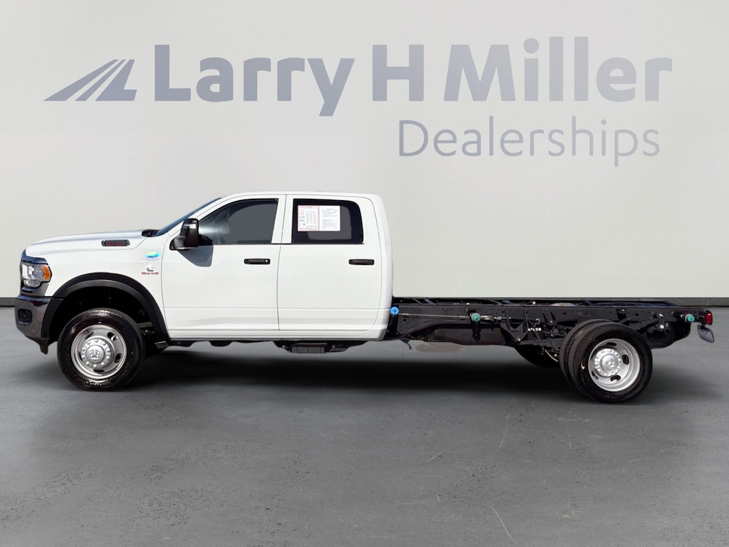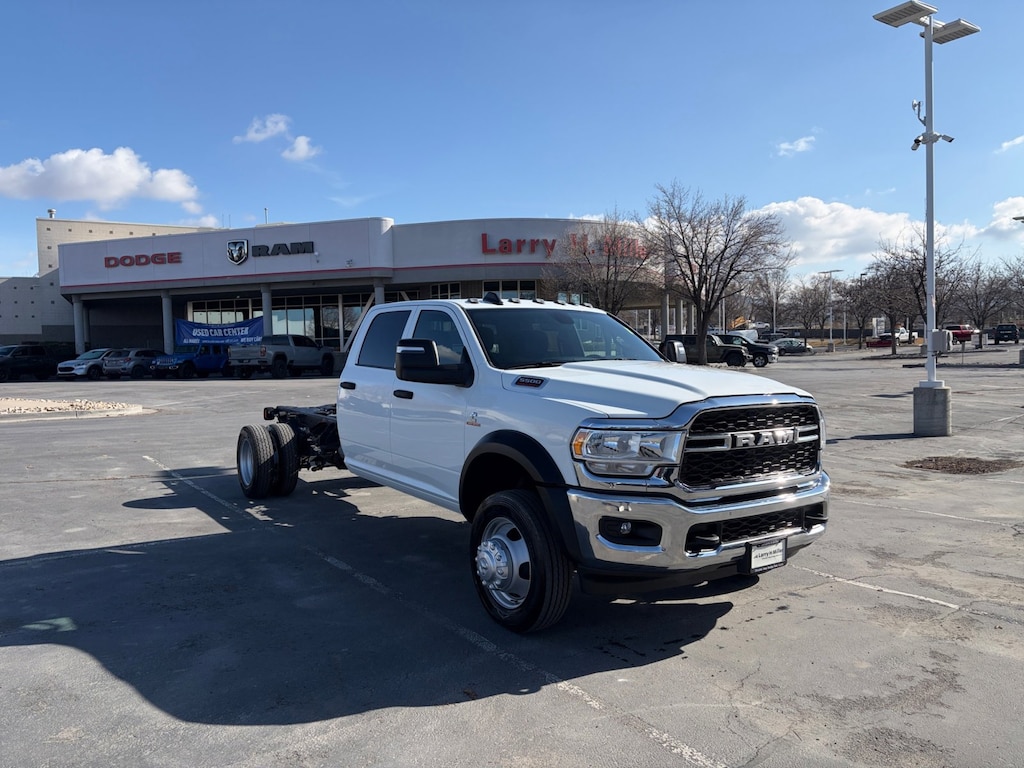 Bright White Clearcoat 2024 Ram 5500HD Tradesman 4WD Aisin 6-Speed Automatic Cummins 6.7L I6 Turbodiesel BUILT FOR WORK NOT WEEKEND WARRIORS If youâre looking for a serious commercial-grade truck near Salt Lake City, this one means business. This is a 2024 Ram 5500 Tradesman Crew Cab Chassis 4x4 with the legendary 6.7L Cummins Turbo Diesel and Aisin heavy-duty transmission and with only 1,500 miles, itâs barely broken in and ready to go to work 3C7WRNFL0RG404393_windowSticker... . Real Truck. Real Capability. Under the hood sits the 6.7L Cummins diesel, paired with the Aisin AS69RC HD automatic, giving you the torque and durability contractors, fleets, and tow operators demand. This truck was built to handle: Dump beds, flatbeds, and utility bodies Snow plows and salt spreaders (Snow Plow Prep Group) Heavy trailers and equipment Long workdays without breaking a sweat With 4x4, a 52-gallon fuel tank, and commercial-duty axles, this Ram is designed for Utah job sites, mountain roads, and winter weather from Sandy to Salt Lake City and everywhere in between. Work-Ready From the Factory This isnât a stripped-down chassis itâs equipped the right way: Upfitter Switches & VSIM module for accessories Trailer Brake Controller Dual fuel tanks (52 & 22 gallon) Remote keyless entry Chrome Appearance Group Digital rearview mirror Fog lamps & tow hooks Crew Cab for your whole crew Perfect for contractors, landscapers, municipalities, and businesses in South Jordan, Draper, West Jordan, Herriman, Riverton, and Utah County who need a truck that earns its keep. Why This One? Compared to other Ram 5500s on the market across the Wasatch Front, this one stands out because: Ultra-low miles (only 1,500!) Already equipped with key upfitter and tow features No waiting months for a factory order Diesel + Aisin combo = long-term durability Ready for immediate upfit and deployment If youâre shopping for a used heavy-duty work truck near Sandy or Salt Lake City, this is about as close to new as it gets without paying brand-new truck money. Market-Based Pricing & Dealer Statement At Larry H. Miller CDJR, we price our vehicles based on real-time market data, not guesswork. That means youâre seeing one of the most aggressive and competitive prices in the Sandy and greater Salt Lake market from day one no games, no inflated numbers. Our inventory moves fast because we price to sell and back it up with a transparent, professional buying experience. Larry H. Miller CDJR 10905 S Automall Dr Sandy, UT 84070 801-590-0465, Black Exterior Truck Badging, Black Key Fob, Black Wheel Flares, Bright Front Bumper, Center Hub, Chrome Appearance Group, Chrome Grille Surround, Chrome Headlamp Bezels, Door Sill Scuff Pads, Glove Box, Halogen Quad Headlamps, Heavy Duty Snow Plow Prep Group, Map/Courtesy Lamp, Matte Black Grille Surround, Matte Black Mesh w/Chrome Grille, Overhead Console, Overhead Cupholder Lamp, Quick Order Package 2YA Tradesman, Rear Dome Lamp.