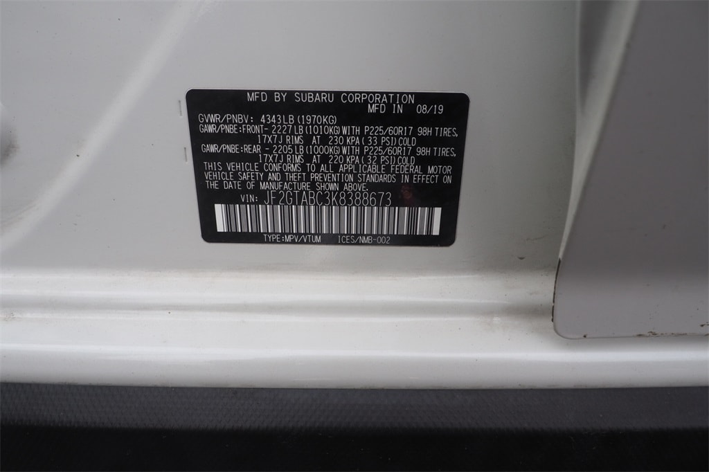 Crystal White Pearl 2019 Subaru Crosstrek 2.0i AWD Lineartronic CVT 2.0L DOHC CLEAN CARFAX, Auto-Dimming Exterior Mirror w/Approach Light, Auto-Dimming Mirror w/Compass & HomeLink, EyeSight System, Map & Dome Lights LED Upgrade, Popular Package #3, Rear Bumper Cover.