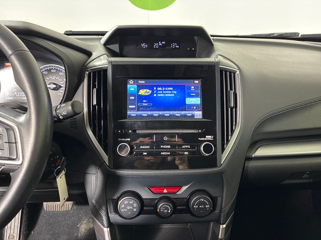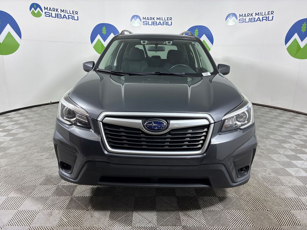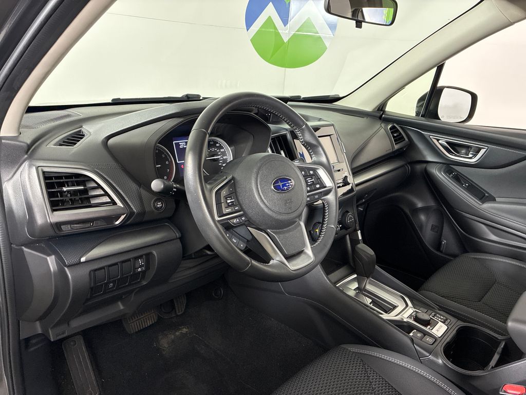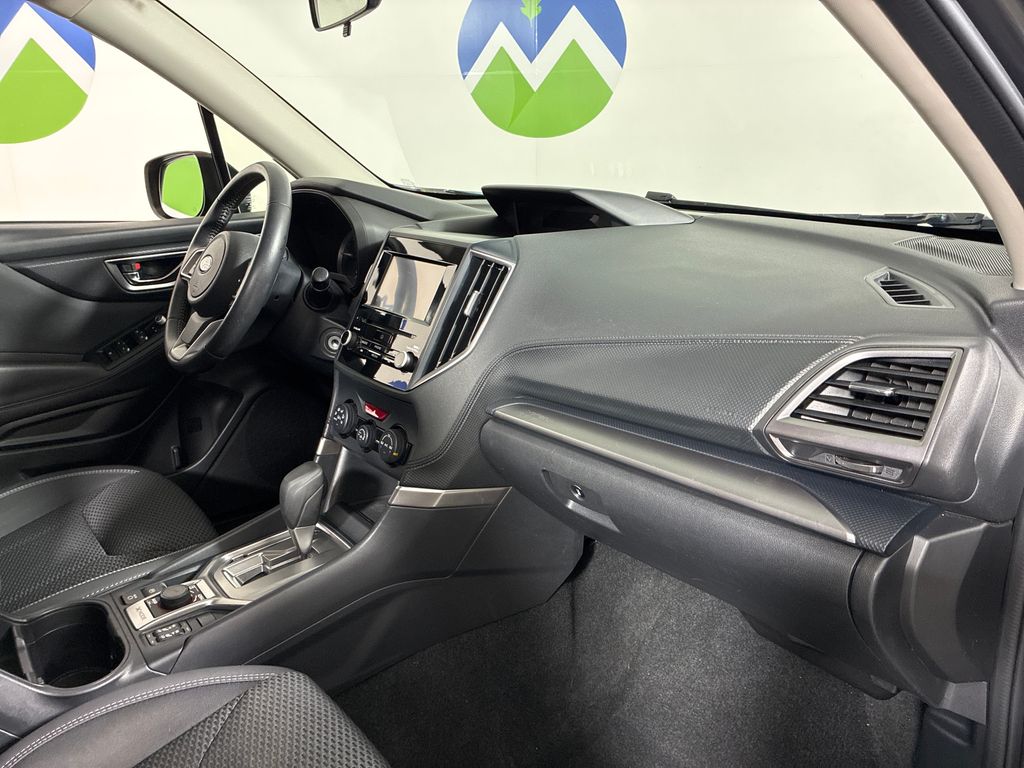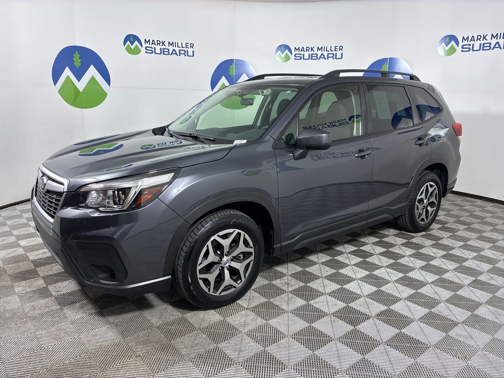 This 2020 Magnetite Gray Metallic Subaru Forester Premium AWD is well equipped and includes these features and benefits: 3.70 Axle Ratio, 4-Wheel Disc Brakes, 6 Speakers, ABS brakes, Air Conditioning, All-Weather Floor Liners, Alloy wheels, AM/FM radio: SiriusXM, Automatic temperature control, Brake assist, Bumpers: body-color, Cargo Tray, CD player, Cloth Upholstery, Driver door bin, Driver vanity mirror, Dual front impact airbags, Dual front side impact airbags, Electronic Stability Control, Emergency communication system: STARLINK Safety and Security (Subscription Required), Exterior Parking Camera Rear, Four wheel independent suspension, Front anti-roll bar, Front Bucket Seats, Front Center Armrest, Front reading lights, Fully automatic headlights, Heated door mirrors, Heated Front Bucket Seats, Heated front seats, Illuminated entry, Knee airbag, Low tire pressure warning, Occupant sensing airbag, Outside temperature display, Overhead airbag, Overhead console, Panic alarm, Passenger door bin, Passenger vanity mirror, Power door mirrors, Power driver seat, Power moonroof: Panoramic, Power steering, Power windows, Radio data system, Radio: Subaru Starlink 6.5" Multimedia Plus System, Rear anti-roll bar, Rear seat center armrest, Rear window defroster, Rear window wiper, Remote keyless entry, Roof rack: rails only, Security system, Speed control, Speed-sensing steering, Split folding rear seat, Spoiler, STARLINK/Apple CarPlay/Android Auto, Steering wheel mounted audio controls, Tachometer, Telescoping steering wheel, Tilt steering wheel, Traction control, Trip computer, Variably intermittent wipers, and Wheels: 17" x 7.0J Black Machine Finish Alloy.