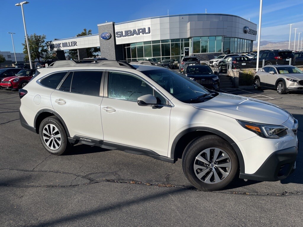 This 2021 Crystal White Pearl Subaru Outback Premium AWD is well equipped and includes these features and benefits: BSD w/RCTA & Keyless Access & Push Button Start (Blind Spot Detection (BSD), Hands-Free Power Rear Gate, Keyless Access w/Push Button Start, and Rear Cross Traffic Alert (RCTA)), 3.90 Axle Ratio, 4-Wheel Disc Brakes, 6 Speakers, ABS brakes, Air Conditioning, All-Weather Floor Liners, Alloy wheels, AM/FM radio: SiriusXM, Auto High-beam Headlights, Automatic temperature control, Brake assist, Bumpers: body-color, Cloth Upholstery, Driver door bin, Driver vanity mirror, Dual front impact airbags, Dual front side impact airbags, Electronic Stability Control, Emergency communication system: STARLINK Safety and Security (Subscription Required), Exterior Parking Camera Rear, Four wheel independent suspension, Front anti-roll bar, Front Bucket Seats, Front Center Armrest w/Storage, Front dual zone A/C, Front fog lights, Front reading lights, Fully automatic headlights, Heated door mirrors, Heated Front Bucket Seats, Heated front seats, Illuminated entry, Knee airbag, Leather steering wheel, Low tire pressure warning, Occupant sensing airbag, Outside temperature display, Overhead airbag, Overhead console, Panic alarm, Passenger door bin, Passenger vanity mirror, Power door mirrors, Power driver seat, Power steering, Power windows, Radio: Subaru STARLINK 11.6" Multimedia Plus Sys, Rear anti-roll bar, Rear seat center armrest, Rear window defroster, Rear window wiper, Remote keyless entry, Roof rack, Security system, Speed control, Speed-sensing steering, Split folding rear seat, Spoiler, STARLINK/Apple CarPlay/Android Auto, Steering wheel mounted audio controls, Steering Wheel Paddle Shift Control Switches, Tachometer, Telescoping steering wheel, Tilt steering wheel, Traction control, Trip computer, Turn signal indicator mirrors, Variably intermittent wipers, and Wheels: 17" x 7J Black Aluminum Alloy.