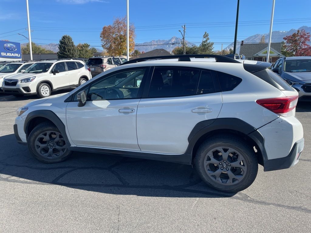This 2022 Crystal White Pearl Subaru Crosstrek Sport AWD is well equipped and includes these features and benefits: 3.70 Axle Ratio, 4-Wheel Disc Brakes, 6 Speakers, ABS brakes, Air Conditioning, Alloy wheels, AM/FM radio: SiriusXM, Anti-whiplash front head restraints, Automatic temperature control, Brake assist, Bumpers: body-color, CD player, Driver door bin, Driver vanity mirror, Dual front impact airbags, Dual front side impact airbags, Electronic Stability Control, Emergency communication system: STARLINK Safety and Security (Subscription Required), Exterior Parking Camera Rear, Four wheel independent suspension, Front anti-roll bar, Front Bucket Seats, Front Center Armrest, Front fog lights, Front reading lights, Fully automatic headlights, Heated door mirrors, Heated Front Bucket Seats, Heated front seats, Illuminated entry, Knee airbag, Leather Shift Knob, Low tire pressure warning, Occupant sensing airbag, Outside temperature display, Overhead airbag, Overhead console, Panic alarm, Passenger door bin, Passenger vanity mirror, Power door mirrors, Power steering, Power windows, Radio data system, Radio: Subaru STARLINK 6.5" Multimedia Plus System, Rear anti-roll bar, Rear window defroster, Rear window wiper, Remote keyless entry, Security system, Speed control, Speed-sensing steering, Split folding rear seat, Spoiler, STARLINK/Apple CarPlay/Android Auto, StarTex Upholstery, Steering wheel mounted audio controls, Subaru STARLINK Smartphone Integration, Tachometer, Telescoping steering wheel, Tilt steering wheel, Traction control, Trip computer, Turn signal indicator mirrors, Variably intermittent wipers, and Wheels: 17" x 7.0J Alloy Dark Gray Finish.