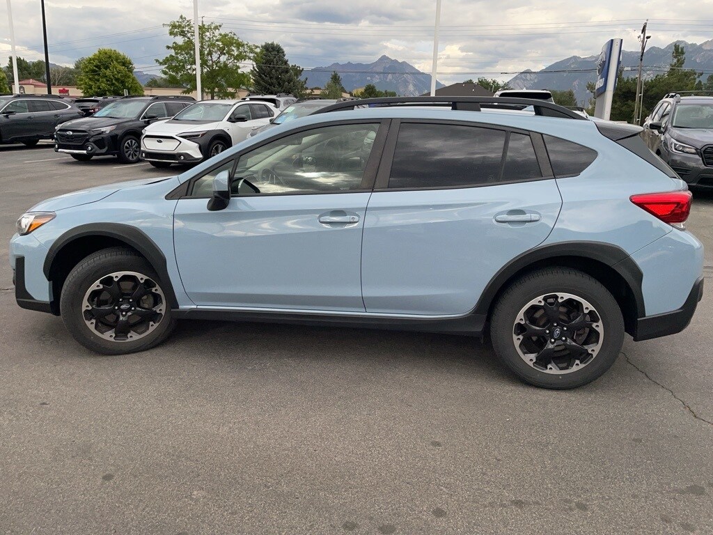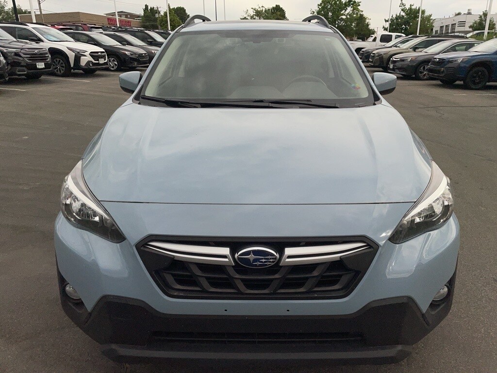 This 2023 Gray Subaru Crosstrek Premium AWD is well equipped and includes these features and benefits: 3.90 Axle Ratio, 4-Wheel Disc Brakes, 6 Speakers, ABS brakes, Air Conditioning, Alloy wheels, AM/FM radio: SiriusXM, Anti-whiplash front head restraints, Automatic temperature control, Brake assist, Bumpers: body-color, CD player, Cloth Upholstery, Driver door bin, Driver vanity mirror, Dual front impact airbags, Dual front side impact airbags, Electronic Stability Control, Emergency communication system: STARLINK Safety and Security (Subscription Required), Exterior Parking Camera Rear, Four wheel independent suspension, Front anti-roll bar, Front Bucket Seats, Front Center Armrest, Front fog lights, Front reading lights, Fully automatic headlights, Heated door mirrors, Heated Front Bucket Seats, Heated front seats, Illuminated entry, Knee airbag, Leather Shift Knob, Low tire pressure warning, Occupant sensing airbag, Outside temperature display, Overhead airbag, Overhead console, Panic alarm, Passenger door bin, Passenger vanity mirror, Power door mirrors, Power steering, Power windows, Radio data system, Radio: Subaru STARLINK 6.5" Multimedia Plus System, Rear anti-roll bar, Rear window defroster, Rear window wiper, Remote keyless entry, Security system, Speed control, Speed-sensing steering, Split folding rear seat, Spoiler, STARLINK/Apple CarPlay/Android Auto, Steering wheel mounted audio controls, Tachometer, Telescoping steering wheel, Tilt steering wheel, Traction control, Trip computer, Variably intermittent wipers, and Wheels: 17" x 7.0J Alum Alloy Blk w/Machine Finish.