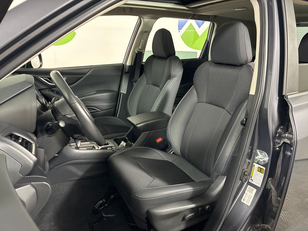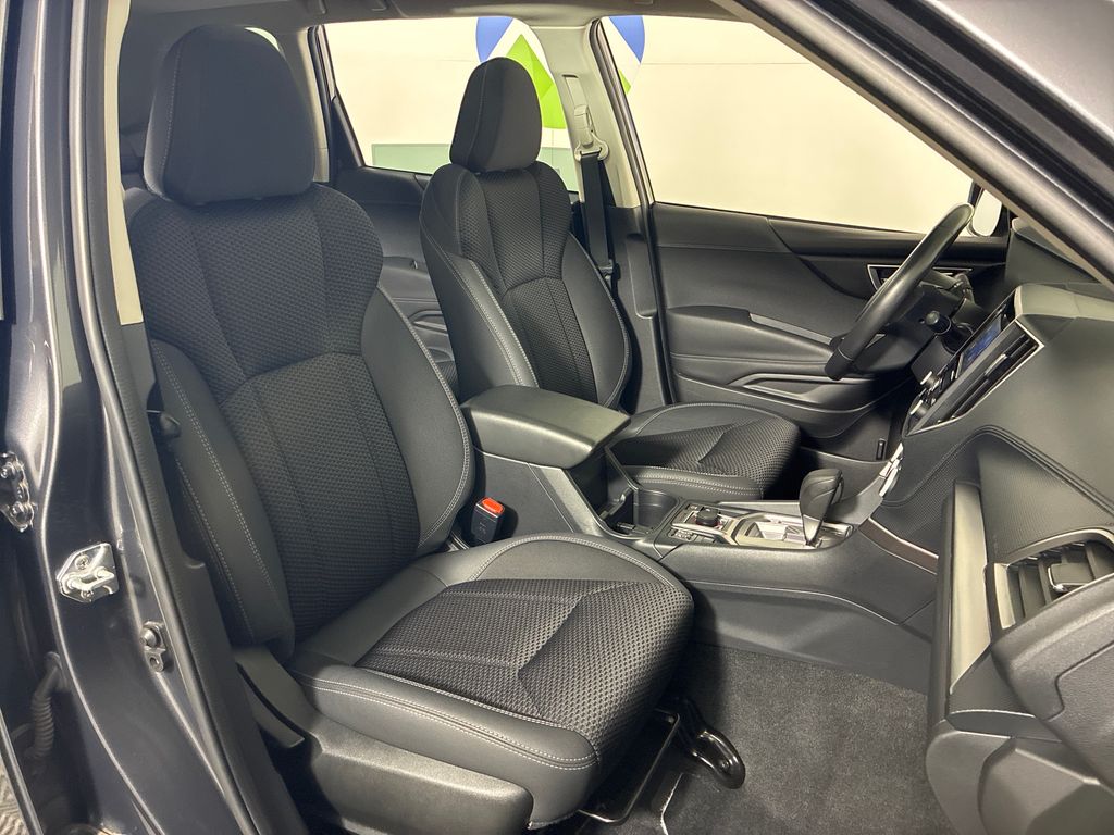 This 2023 Magnetite Gray Metallic Subaru Forester Premium AWD is well equipped and includes these features and benefits: Blind Spot Detection w/RCTA & Power Rear Gate (Blind-Spot Detection (BSD), Driver's Seatback Divided Pocket, Dual USB Charge Ports, EyeSight System, Multi-Function High Grade Display, and Power Rear Gate), 3.70 Axle Ratio, 4-Wheel Disc Brakes, 6 Speakers, ABS brakes, Air Conditioning, Alloy wheels, AM/FM radio: SiriusXM, Anti-whiplash front head restraints, Auto High-beam Headlights, Auto-Dimming Mirror w/Compass & HomeLink, Automatic temperature control, Brake assist, Bumpers: body-color, CD player, Driver door bin, Driver vanity mirror, Dual front impact airbags, Dual front side impact airbags, Electronic Stability Control, Emergency communication system: STARLINK Safety and Security (Subscription Required), Exterior Parking Camera Rear, Four wheel independent suspension, Front anti-roll bar, Front Bucket Seats, Front Center Armrest, Front fog lights, Front reading lights, Fully automatic headlights, Heated door mirrors, Heated Front Bucket Seats, Heated front seats, Illuminated entry, Knee airbag, Low tire pressure warning, Occupant sensing airbag, Outside temperature display, Overhead airbag, Overhead console, Panic alarm, Passenger door bin, Passenger vanity mirror, Power door mirrors, Power driver seat, Power moonroof: Panoramic, Power steering, Power windows, Premium Cloth Upholstery, Radio data system, Radio: Subaru Starlink 6.5" Multimedia Plus System, Rear anti-roll bar, Rear seat center armrest, Rear window defroster, Rear window wiper, Remote keyless entry, Rockford Fosgate Speaker Upgrade, Roof rack: rails only, Security system, Speed control, Speed-sensing steering, Split folding rear seat, Spoiler, STARLINK/Apple CarPlay/Android Auto, Steering wheel mounted audio controls, Sunshade - Windshield, Tachometer, Telescoping steering wheel, Tilt steering wheel, Traction control, Trip computer, Variably intermittent wipers, and Wheels: 17" x 7.0 J Black Machine Finish Alloy.