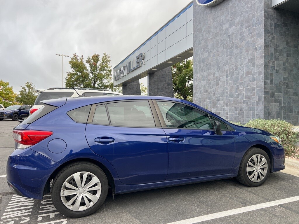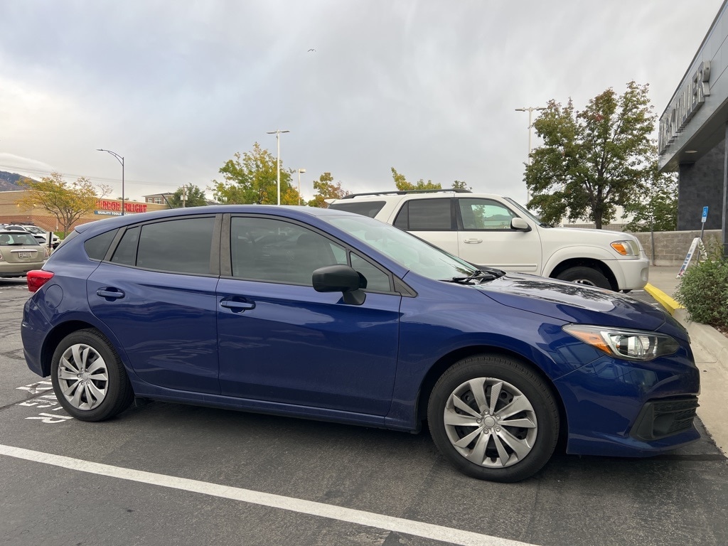 This 2023 Sapphire Blue Pearl Subaru Impreza AWD is well equipped and includes these features and benefits: 4 Speakers, 4-Wheel Disc Brakes, ABS brakes, Air Conditioning, AM/FM radio, Anti-whiplash front head restraints, Brake assist, Bumpers: body-color, Cloth Upholstery, Driver door bin, Driver vanity mirror, Dual front impact airbags, Dual front side impact airbags, Electronic Stability Control, Exterior Parking Camera Rear, Four wheel independent suspension, Front anti-roll bar, Front Bucket Seats, Front Center Armrest, Front reading lights, Illuminated entry, Knee airbag, Low tire pressure warning, Occupant sensing airbag, Outside temperature display, Overhead airbag, Overhead console, Panic alarm, Passenger door bin, Passenger vanity mirror, Power door mirrors, Power steering, Power windows, Radio data system, Radio: Subaru STARLINK 6.5" Multimedia System, Rear window defroster, Rear window wiper, Remote keyless entry, Security system, Speed control, Speed-sensing steering, Split folding rear seat, Spoiler, STARLINK/Apple CarPlay/Android Auto, Steering wheel mounted audio controls, Tachometer, Telescoping steering wheel, Tilt steering wheel, Traction control, Trip computer, Variably intermittent wipers, and Wheels: 16" x 6.5" Black Finish J Steel.
