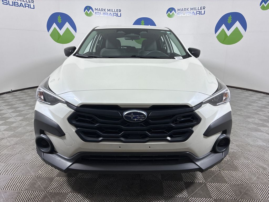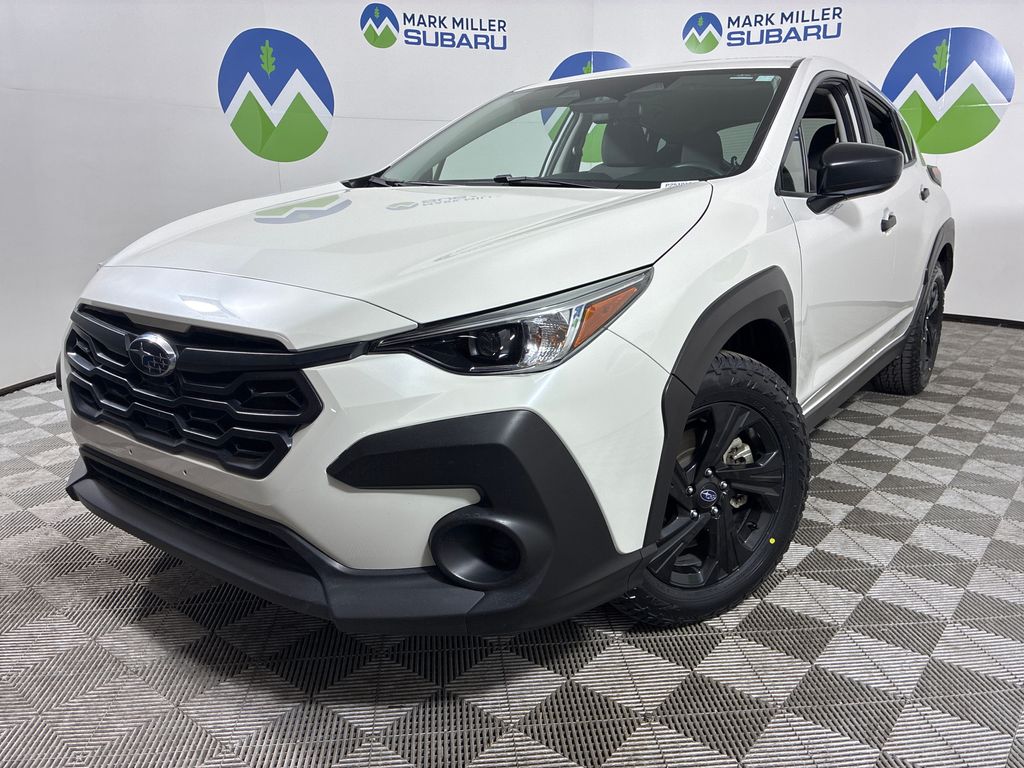 This 2024 Crystal White Pearl Subaru Crosstrek Base AWD is well equipped and includes these features and benefits: Standard Model, 3.90 Axle Ratio, 4 Speakers, 4-Wheel Disc Brakes, ABS brakes, Air Conditioning, Alloy wheels, AM/FM radio: SiriusXM, Anti-whiplash front head restraints, Auto High-beam Headlights, Automatic temperature control, Brake assist, Bumpers: body-color, Cloth Upholstery, Driver door bin, Driver vanity mirror, Dual front impact airbags, Dual front side impact airbags, Electronic Stability Control, Exterior Parking Camera Rear, Four wheel independent suspension, Front anti-roll bar, Front Bucket Seats, Front Center Armrest, Front dual zone A/C, Front reading lights, Fully automatic headlights, Illuminated entry, Knee airbag, Low tire pressure warning, Occupant sensing airbag, Outside temperature display, Overhead airbag, Overhead console, Panic alarm, Passenger door bin, Passenger vanity mirror, Power door mirrors, Power steering, Power windows, Radio data system, Radio: Subaru STARLINK Dual 7.0" Multimedia System, Rear anti-roll bar, Rear window defroster, Rear window wiper, Remote keyless entry, Security system, Speed control, Speed-sensing steering, Split folding rear seat, Spoiler, STARLINK/Apple CarPlay/Android Auto, Steering wheel mounted audio controls, Tachometer, Telescoping steering wheel, Tilt steering wheel, Traction control, Trip computer, Variably intermittent wipers, and Wheels: 17" x 7.0J Dark Gray Aluminum Alloy.