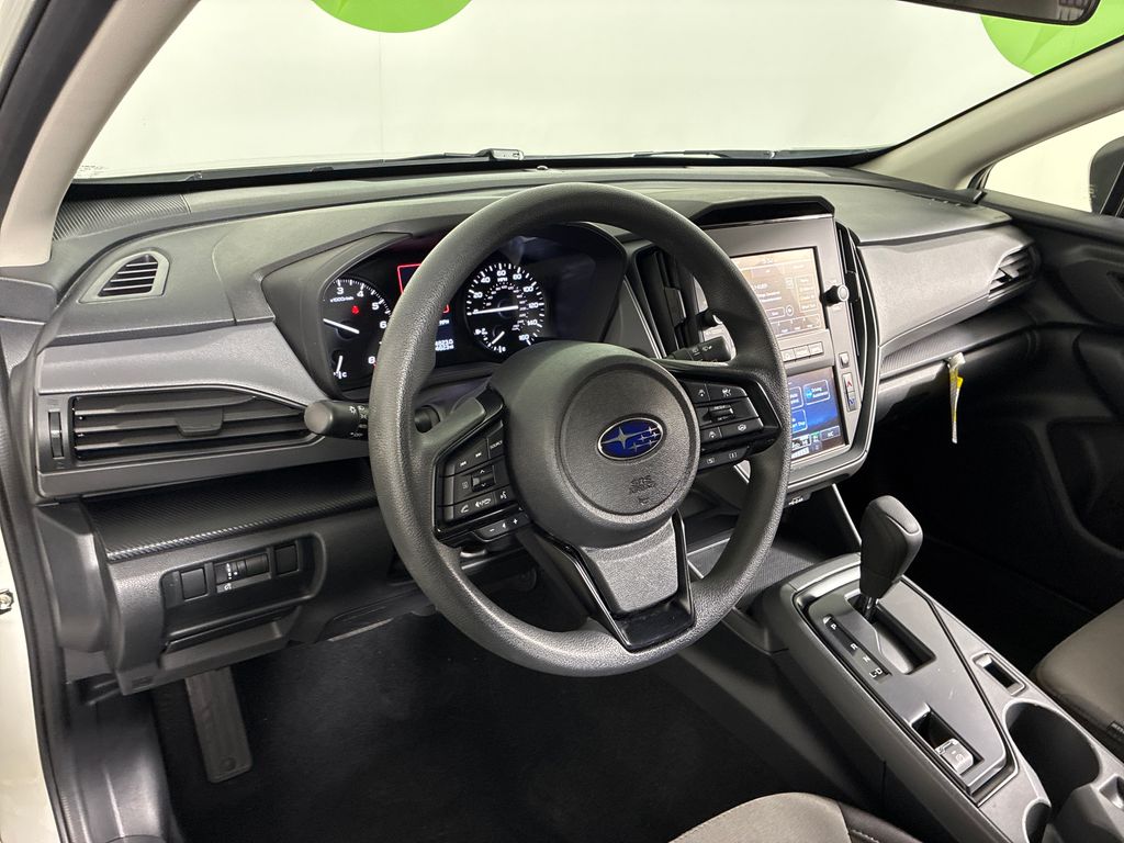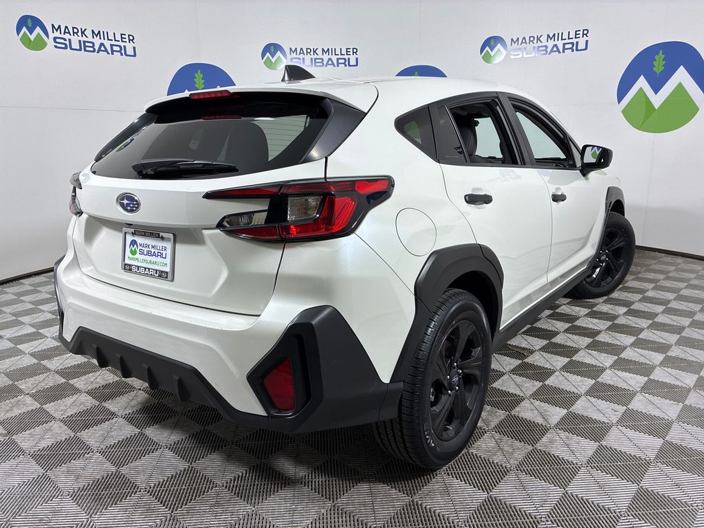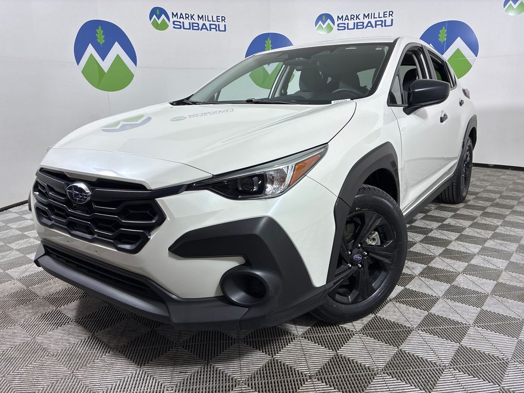 This 2024 Crystal White Pearl Subaru Crosstrek Base AWD is well equipped and includes these features and benefits: Standard Model, 3.90 Axle Ratio, 4 Speakers, 4-Wheel Disc Brakes, ABS brakes, Air Conditioning, Alloy wheels, AM/FM radio: SiriusXM, Anti-whiplash front head restraints, Auto High-beam Headlights, Automatic temperature control, Brake assist, Bumpers: body-color, Cloth Upholstery, Driver door bin, Driver vanity mirror, Dual front impact airbags, Dual front side impact airbags, Electronic Stability Control, Exterior Parking Camera Rear, Four wheel independent suspension, Front anti-roll bar, Front Bucket Seats, Front Center Armrest, Front dual zone A/C, Front reading lights, Fully automatic headlights, Illuminated entry, Knee airbag, Low tire pressure warning, Occupant sensing airbag, Outside temperature display, Overhead airbag, Overhead console, Panic alarm, Passenger door bin, Passenger vanity mirror, Power door mirrors, Power steering, Power windows, Radio data system, Radio: Subaru STARLINK Dual 7.0" Multimedia System, Rear anti-roll bar, Rear window defroster, Rear window wiper, Remote keyless entry, Security system, Speed control, Speed-sensing steering, Split folding rear seat, Spoiler, STARLINK/Apple CarPlay/Android Auto, Steering wheel mounted audio controls, Tachometer, Telescoping steering wheel, Tilt steering wheel, Traction control, Trip computer, Variably intermittent wipers, and Wheels: 17" x 7.0J Dark Gray Aluminum Alloy.