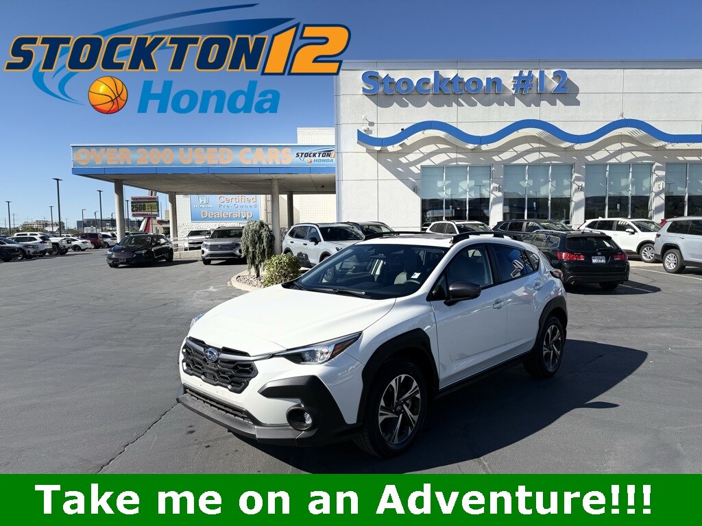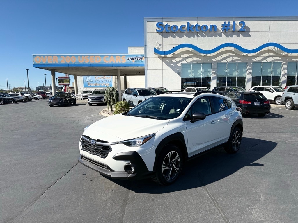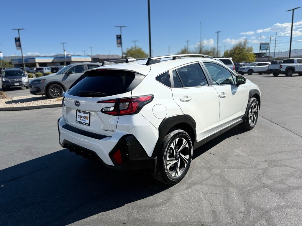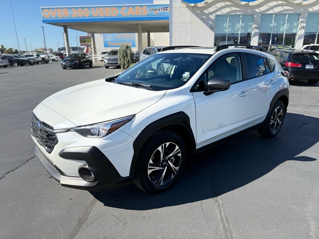 Crosstrek Premium, 4D Sport Utility, 2.0L 4-Cylinder DOHC 16V, Lineartronic CVT, AWD, Crystal White Pearl, Gray Cloth, 10-Way Power Driver's Seat, 3.90 Axle Ratio, 4-Wheel Disc Brakes, 6 Speakers, ABS brakes, Air Conditioning, All-Weather Floor Liners, All-Weather Package, Alloy wheels, AM/FM radio: SiriusXM, Anti-whiplash front head restraints, Auto High-beam Headlights, Auto-Dimming Exterior Mirror w/Approach Light, Auto-Dimming Mirror w/Compass & HomeLink, Automatic temperature control, Blind Spot Detection w/Rear Cross-Traffic Alert, Brake assist, BSD/RCTA & Moonrf & All Weather Pkg & Pwr Dr. Seat, Bumpers: body-color, Crosstrek Mirror Package, Driver door bin, Driver vanity mirror, Dual front impact airbags, Dual front side impact airbags, Electronic Stability Control, Emergency communication system: STARLINK Safety and Security (Subscription Required), Exterior Parking Camera Rear, Four wheel independent suspension, Front anti-roll bar, Front Bucket Seats, Front Center Armrest, Front dual zone A/C, Front fog lights, Front reading lights, Fully automatic headlights, Heated Exterior Mirrors, Heated Front Seats, Heated Wipers, Illuminated entry, Knee airbag, Low tire pressure warning, Occupant sensing airbag, Outside temperature display, Overhead airbag, Overhead console, Panic alarm, Passenger door bin, Passenger vanity mirror, Power door mirrors, Power Moonroof, Power steering, Power windows, Premium Cloth Upholstery, Radio data system, Radio: Subaru STARLINK 11.6" Multimedia Plus Sys, Rear anti-roll bar, Rear Bumper Cover, Rear seat center armrest, Rear window defroster, Rear window wiper, Remote keyless entry, Security system, Speed control, Speed-sensing steering, Splash Guards, Split folding rear seat, Spoiler, STARLINK/Apple CarPlay/Android Auto, Steering wheel mounted audio controls, Sunshade - Windshield, Tachometer, Telescoping steering wheel, Tilt steering wheel, Traction control, Trip computer, Turn signal indicator mirrors, Variably intermittent wipers, Wheels: 17" x 7.0J Dark Gray Aluminum Alloy, Crosstrek Premium, 4D Sport Utility, 2.0L 4-Cylinder DOHC 16V, Lineartronic CVT, AWD, Crystal White Pearl, Gray Cloth.