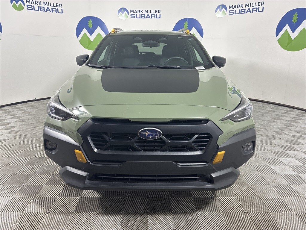 This 2024 Alpine Green Subaru Crosstrek Wilderness AWD is well equipped and includes these features and benefits: Standard Model, 4-Wheel Disc Brakes, 4.11 Axle Ratio, 6 Speakers, ABS brakes, Air Conditioning, Alloy wheels, AM/FM radio: SiriusXM, Anti-whiplash front head restraints, Auto High-beam Headlights, Automatic temperature control, Brake assist, Bumpers: body-color, Driver door bin, Driver vanity mirror, Dual front impact airbags, Dual front side impact airbags, Electronic Stability Control, Emergency communication system: STARLINK Safety and Security (Subscription Required), Exterior Parking Camera Rear, Four wheel independent suspension, Front anti-roll bar, Front Bucket Seats, Front Center Armrest, Front dual zone A/C, Front fog lights, Front reading lights, Fully automatic headlights, Heated door mirrors, Heated Front Bucket Seats, Heated front seats, Illuminated entry, Knee airbag, Leather Shift Knob, Low tire pressure warning, Occupant sensing airbag, Outside temperature display, Overhead airbag, Overhead console, Panic alarm, Passenger door bin, Passenger vanity mirror, Power door mirrors, Power steering, Power windows, Radio data system, Radio: Subaru STARLINK 11.6" Multimedia Plus Sys, Rear anti-roll bar, Rear seat center armrest, Rear window defroster, Rear window wiper, Remote keyless entry, Security system, Speed control, Speed-sensing steering, Split folding rear seat, Spoiler, STARLINK/Apple CarPlay/Android Auto, Steering wheel mounted audio controls, Tachometer, Telescoping steering wheel, Tilt steering wheel, Traction control, Trailer Hitch, Trip computer, Turn signal indicator mirrors, Variably intermittent wipers, Wheels: 17" x 7.0J Matte Black Aluminum Alloy, and Wilderness StarTex Upholstery.