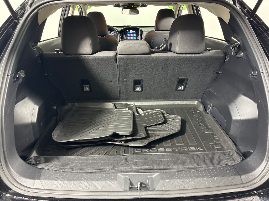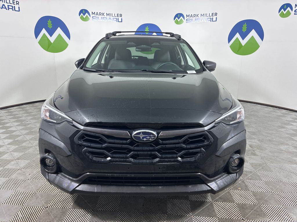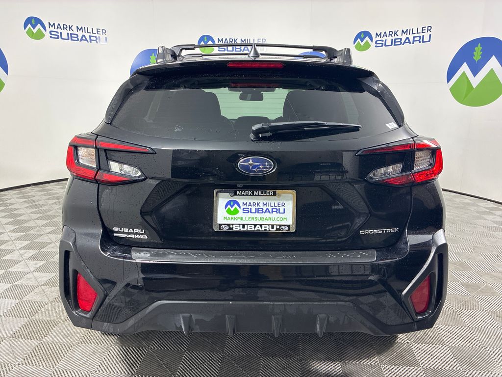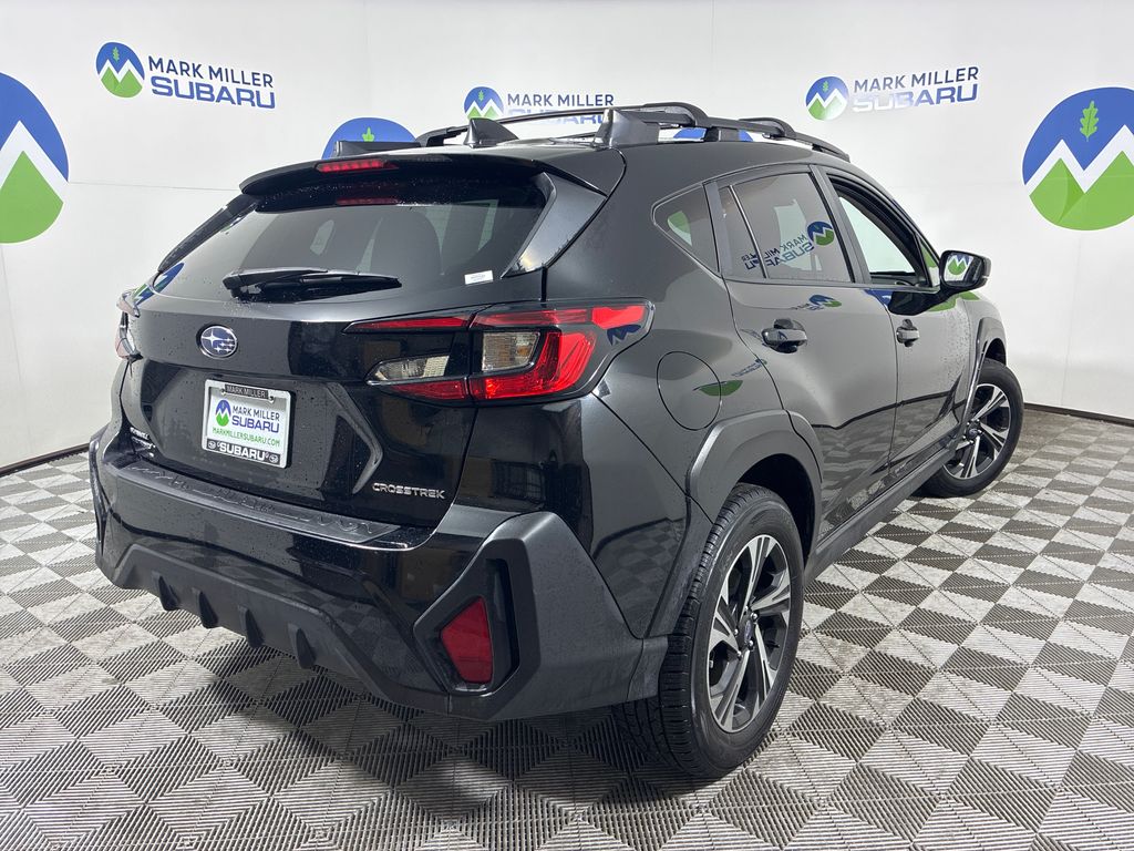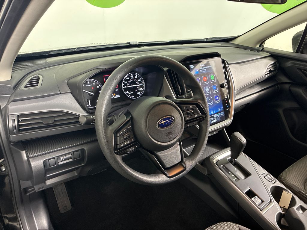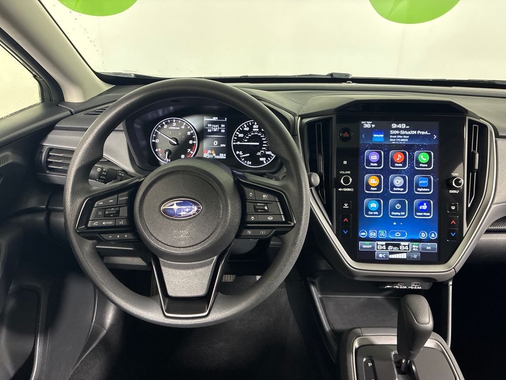 This 2024 Crystal Black Silica Subaru Crosstrek Premium AWD is well equipped and includes these features and benefits: 3.90 Axle Ratio, 4-Wheel Disc Brakes, 6 Speakers, ABS brakes, Air Conditioning, Alloy wheels, AM/FM radio: SiriusXM, Anti-whiplash front head restraints, Auto High-beam Headlights, Automatic temperature control, Brake assist, Bumpers: body-color, Driver door bin, Driver vanity mirror, Dual front impact airbags, Dual front side impact airbags, Electronic Stability Control, Emergency communication system: STARLINK Safety and Security (Subscription Required), Exterior Parking Camera Rear, Four wheel independent suspension, Front anti-roll bar, Front Bucket Seats, Front Center Armrest, Front dual zone A/C, Front fog lights, Front reading lights, Fully automatic headlights, Illuminated entry, Knee airbag, Low tire pressure warning, Occupant sensing airbag, Outside temperature display, Overhead airbag, Overhead console, Panic alarm, Passenger door bin, Passenger vanity mirror, Power door mirrors, Power steering, Power windows, Premium Cloth Upholstery, Radio data system, Radio: Subaru STARLINK 11.6" Multimedia Plus Sys, Rear anti-roll bar, Rear seat center armrest, Rear window defroster, Rear window wiper, Remote keyless entry, Security system, Speed control, Speed-sensing steering, Split folding rear seat, Spoiler, STARLINK/Apple CarPlay/Android Auto, Steering wheel mounted audio controls, Tachometer, Telescoping steering wheel, Tilt steering wheel, Traction control, Trip computer, Turn signal indicator mirrors, Variably intermittent wipers, and Wheels: 17" x 7.0J Dark Gray Aluminum Alloy.