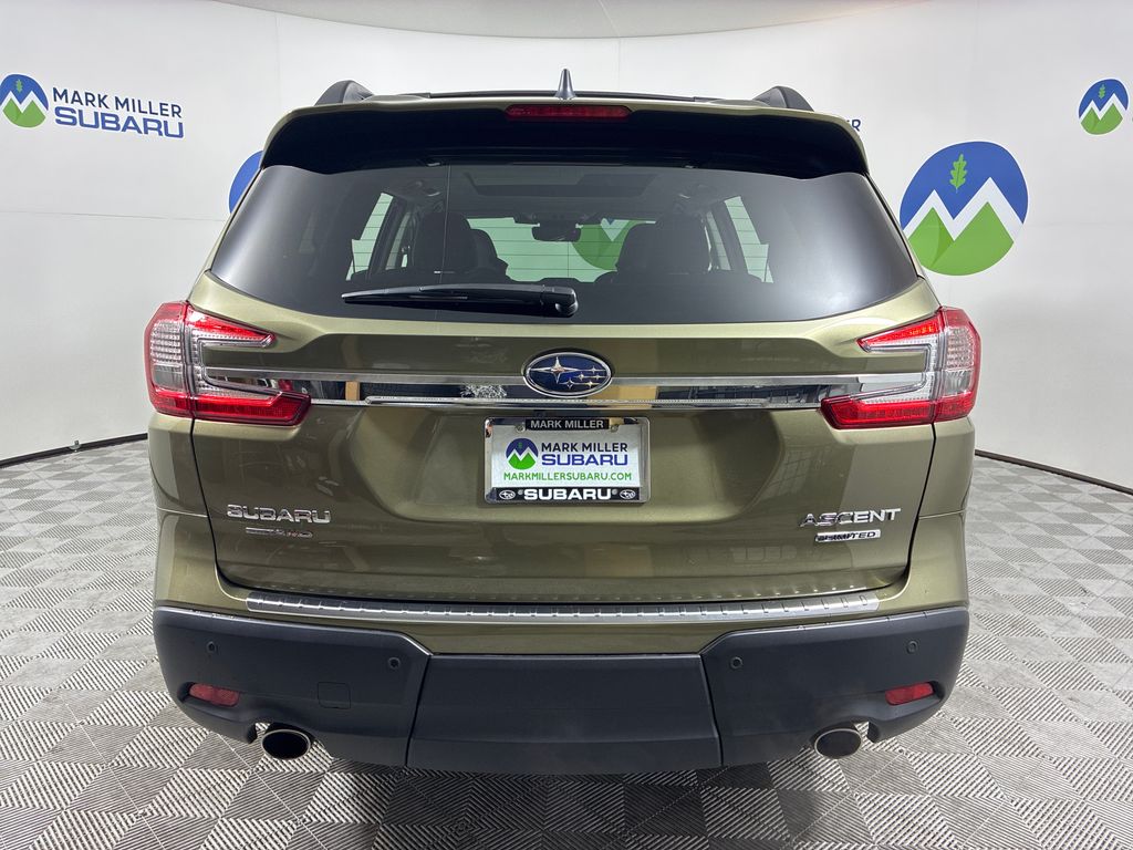 This 2025 Green Metallic Subaru Ascent Limited AWD is well equipped and includes these features and benefits: Standard Model, 14 Speakers, 3rd row seats: bench, 4-Wheel Disc Brakes, ABS brakes, Aero Crossbar Set, Air Conditioning, Alloy wheels, AM/FM radio: SiriusXM with 360L, Apple CarPlay & Android Auto, Auto High-beam Headlights, Auto-Dimming Exterior Mirror w/Approach Light, Auto-dimming Rear-View mirror, Automatic temperature control, Brake assist, Bumpers: body-color, Cargo Net, Cargo Tray, Compass, Delay-off headlights, Driver door bin, Driver vanity mirror, Dual front impact airbags, Dual front side impact airbags, Electronic Stability Control, Emergency communication system: MySubaru Safety (3-year free trial), Exterior Parking Camera Rear, Four wheel independent suspension, Front anti-roll bar, Front Bucket Seats, Front Center Armrest, Front dual zone A/C, Front fog lights, Front reading lights, Fully automatic headlights, Garage door transmitter: HomeLink, harman/kardon® Speakers, Heated door mirrors, Heated Front Bucket Seats, Heated front seats, Heated rear seats, Heated steering wheel, Illuminated entry, Knee airbag, Leather Shift Knob, Leather steering wheel, LED Cargo Area Lighting, LED Upgrade, Low tire pressure warning, Memory seat, Navigation System, Occupant sensing airbag, Outside temperature display, Overhead airbag, Overhead console, Panic alarm, Passenger door bin, Passenger vanity mirror, Perforated Leather-Trimmed Upholstery, Power door mirrors, Power driver seat, Power Liftgate, Power moonroof, Power passenger seat, Power steering, Power windows, Radio data system, Radio: Subaru 11.6" Multimedia System w/Navigation, Rear air conditioning, Rear anti-roll bar, Rear Bumper Cover, Rear reading lights, Rear window defroster, Rear window wiper, Reclining 3rd row seat, Remote keyless entry, Security system, Speed control, Speed-sensing steering, Split folding rear seat, Spoiler, Steering wheel mounted audio controls, Tachometer, Telescoping steering wheel, Tilt steering wheel, Traction control, Trip computer, Turn signal indicator mirrors, Variably intermittent wipers, and Wheels: 20" x 7.5 J Dk Gray Alloy w/Machine Finish.