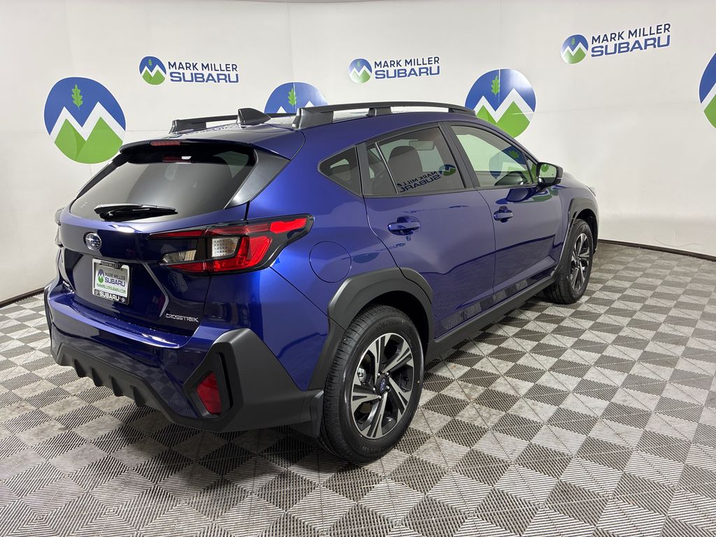 This 2025 Sapphire Blue Pearl Subaru Crosstrek Premium AWD is well equipped and includes these features and benefits: Crosstrek Mirror Package (Auto-Dimming Exterior Mirror w/Approach Light and Auto-Dimming Mirror w/Compass & HomeLink), Standard Model, 4-Wheel Disc Brakes, 6 Speakers, ABS brakes, Air Conditioning, Alloy wheels, AM/FM radio: SiriusXM, Anti-whiplash front head restraints, Auto High-beam Headlights, Automatic temperature control, Brake assist, Bumpers: body-color, Cloth Upholstery, Driver door bin, Driver vanity mirror, Dual front impact airbags, Dual front side impact airbags, Electronic Stability Control, Emergency communication system, Exterior Parking Camera Rear, Four wheel independent suspension, Front anti-roll bar, Front Bucket Seats, Front Center Armrest, Front dual zone A/C, Front fog lights, Front reading lights, Fully automatic headlights, Illuminated entry, Knee airbag, Low tire pressure warning, Occupant sensing airbag, Outside temperature display, Overhead airbag, Overhead console, Panic alarm, Passenger door bin, Passenger vanity mirror, Power door mirrors, Power steering, Power windows, Radio data system, Radio: Subaru 11.6" Multimedia Plus System, Rear anti-roll bar, Rear seat center armrest, Rear window defroster, Rear window wiper, Remote keyless entry, Security system, Speed control, Speed-sensing steering, Splash Guards, Split folding rear seat, Spoiler, Steering wheel mounted audio controls, Tachometer, Telescoping steering wheel, Tilt steering wheel, Traction control, Trip computer, Turn signal indicator mirrors, Variably intermittent wipers, and Wheels: 17" x 7.0" J Machine Finish Aluminum-Alloy.