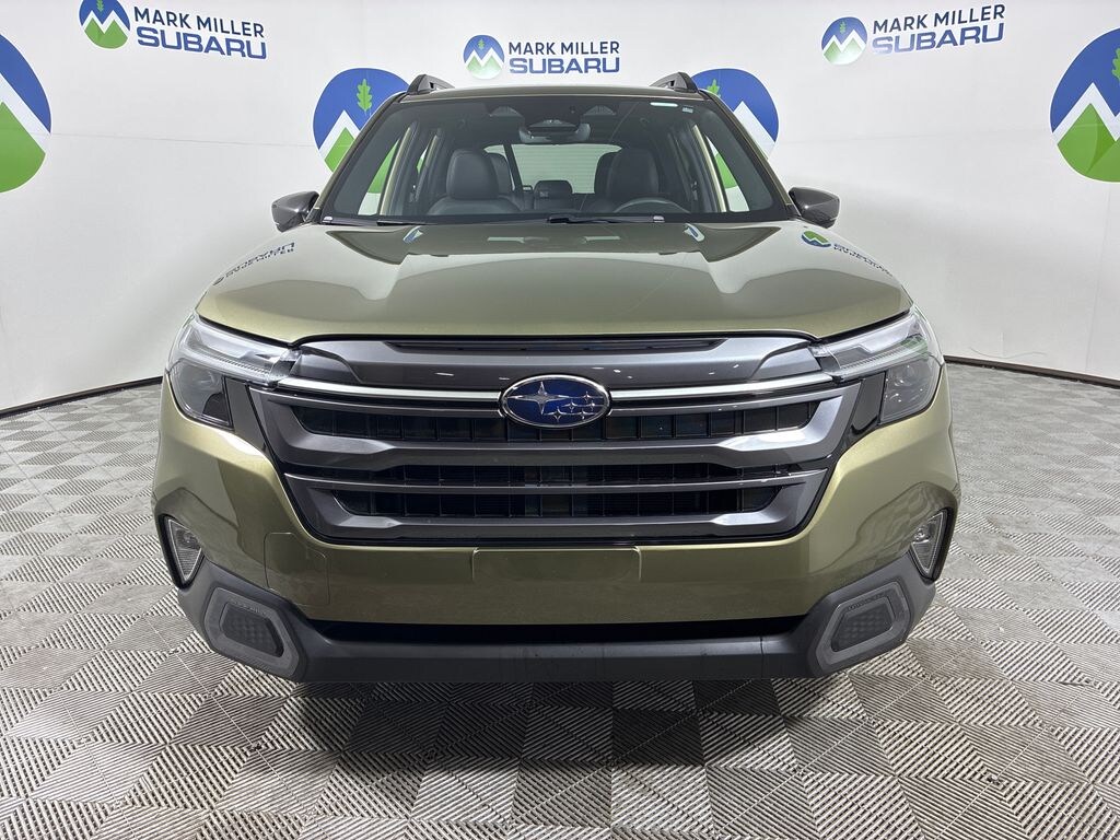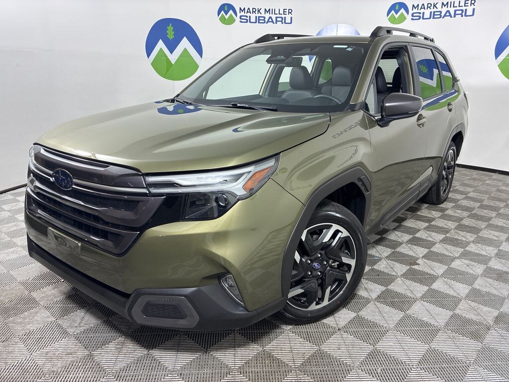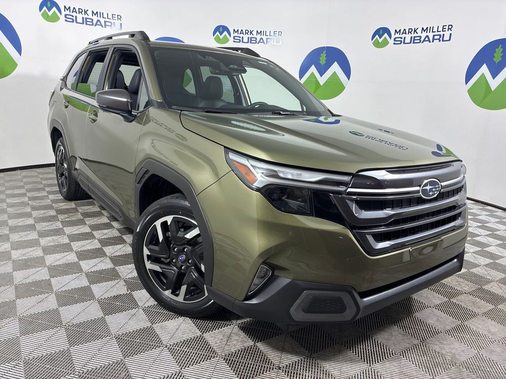 This 2025 Autumn Green Metallic Subaru Forester Limited AWD is well equipped and includes these features and benefits: harman/kardon Audio & Navigation & RAB (Reverse Automatic Braking (RAB) System), Popular Package #1 (Auto-Dimming Exterior Mirror w/Approach Light, Auto-Dimming Mirror w/Compass & HomeLink, Cargo Tray, and Rear Bumper Cover), 4-Wheel Disc Brakes, 6 Speakers, ABS brakes, Air Conditioning, All-Weather Floor Liners, Alloy wheels, AM/FM radio: SiriusXM with 360L, Anti-whiplash front head restraints, Auto High-beam Headlights, Automatic temperature control, Brake assist, Bumpers: body-color, Driver door bin, Driver vanity mirror, Dual front impact airbags, Dual front side impact airbags, Electronic Stability Control, Exterior Parking Camera Rear, Four wheel independent suspension, Front anti-roll bar, Front Bucket Seats, Front Center Armrest, Front dual zone A/C, Front fog lights, Front reading lights, Fully automatic headlights, Heated door mirrors, Heated Front Bucket Seats, Heated front seats, Heated steering wheel, Illuminated entry, Knee airbag, Leather steering wheel, LED Upgrade, Low tire pressure warning, Occupant sensing airbag, Outside temperature display, Overhead airbag, Overhead console, Panic alarm, Passenger door bin, Passenger vanity mirror, Perforated Leather-Trimmed Upholstery, Power door mirrors, Power driver seat, Power Liftgate, Power moonroof: Panoramic, Power passenger seat, Power steering, Power windows, Radio data system, Rear anti-roll bar, Rear seat center armrest, Rear window defroster, Rear window wiper, Remote keyless entry, Security system, Speed control, Speed-sensing steering, Split folding rear seat, Spoiler, Steering wheel mounted audio controls, Tachometer, Telescoping steering wheel, Tilt steering wheel, Traction control, Trip computer, Turn signal indicator mirrors, Variably intermittent wipers, and Wheels: 18" x 7.0 J Dark Metallic Aluminum-Alloy.