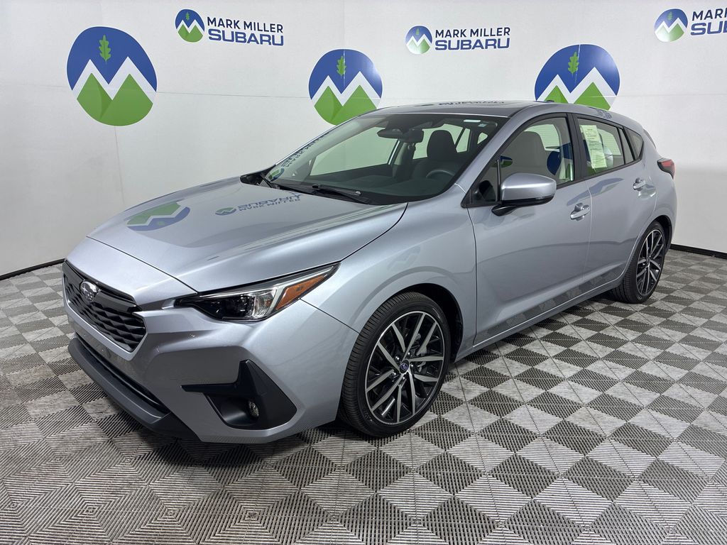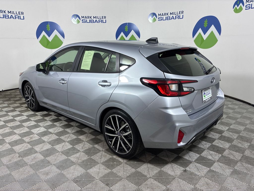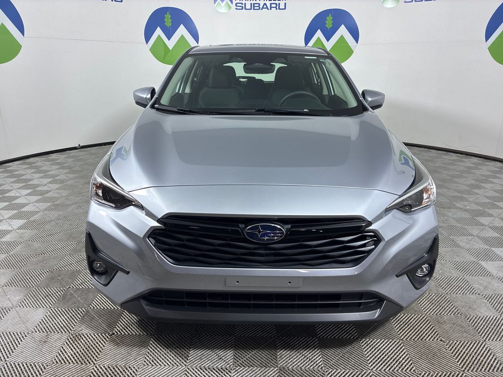 This 2025 Ice Silver Metallic Subaru Impreza Sport AWD is well equipped and includes these features and benefits: All Weather Package (Dual-Mode Heated Front Seats, Heated Exterior Power Mirrors, and Windshield Wiper De-Icer), BSD/RCTA & All Weather Pkg & Power Moonroof (Blind Spot Detection (BSD), Power Moonroof, Rear Cross-Traffic Alert (RCTA) System, and Sun Visors w/Vanity Mirror & Lights), 4-Wheel Disc Brakes, 6 Speakers, ABS brakes, Air Conditioning, All-Weather Floor Liners, Alloy wheels, AM/FM radio: SiriusXM with 360L, Anti-whiplash front head restraints, Auto High-beam Headlights, Auto-Dimming Exterior Mirror w/Approach Light, Auto-Dimming Mirror w/Compass & HomeLink, Automatic temperature control, Brake assist, Bumpers: body-color, Driver door bin, Driver vanity mirror, Dual front impact airbags, Dual front side impact airbags, Electronic Stability Control, Emergency communication system, Exterior Parking Camera Rear, Four wheel independent suspension, Front anti-roll bar, Front Bucket Seats, Front Center Armrest, Front dual zone A/C, Front fog lights, Front reading lights, Fully automatic headlights, Illuminated entry, Knee airbag, Low tire pressure warning, Occupant sensing airbag, Outside temperature display, Overhead airbag, Overhead console, Panic alarm, Passenger door bin, Passenger vanity mirror, Power door mirrors, Power steering, Power windows, Premium Sport Cloth Upholstery, Radio data system, Radio: Subaru 11.6" Multimedia Plus System, Rear anti-roll bar, Rear seat center armrest, Rear window defroster, Rear window wiper, Remote keyless entry, Security system, Speed control, Speed-sensing steering, Split folding rear seat, Spoiler, Steering wheel mounted audio controls, Tachometer, Telescoping steering wheel, Tilt steering wheel, Traction control, Trip computer, Turn signal indicator mirrors, Variably intermittent wipers, and Wheels: 18" x 7.0" J Machine Finish Aluminum-Alloy.