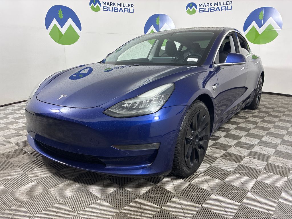 This 2018 Blue Tesla Model 3 Long Range AWD is well equipped and includes these features and benefits: ABS brakes, Alloy wheels, Compass, Electronic Stability Control, Front dual zone A/C, Heated door mirrors, Heated Front Bucket Seats, Heated front seats, Heated rear seats, Illuminated entry, Low tire pressure warning, Navigation System, Remote keyless entry, Traction control, 15 Speakers, 4-Wheel Disc Brakes, Air Conditioning, Auto High-beam Headlights, Auto-dimming door mirrors, Auto-dimming Rear-View mirror, Automatic temperature control, Brake assist, Bumpers: body-color, Delay-off headlights, Driver door bin, Driver vanity mirror, Dual front impact airbags, Dual front side impact airbags, Exterior Parking Camera Rear, Four wheel independent suspension, Front anti-roll bar, Front Bucket Seats, Front Center Armrest, Front fog lights, Front reading lights, Fully automatic headlights, Garage door transmitter: Homelink, Genuine wood dashboard insert, Knee airbag, Lane Departure Warning System, Memory seat, Occupant sensing airbag, Outside temperature display, Overhead airbag, Passenger door bin, Passenger vanity mirror, Power door mirrors, Power driver seat, Power passenger seat, Power steering, Power windows, Radio data system, Radio: FM w/Premium Audio System, Rear reading lights, Rear seat center armrest, Rear window defroster, Security system, Speed control, Speed-sensing steering, Split folding rear seat, Steering wheel memory, Steering wheel mounted A/C controls, Steering wheel mounted audio controls, Synthetic Leather Seat Trim, Telescoping steering wheel, Tilt steering wheel, Trip computer, Variably intermittent wipers, and Wheels: 18" Aero.
