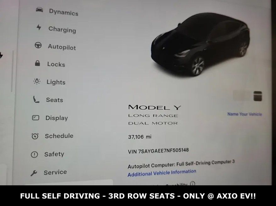 2022 TESLA MODEL Y LONG RANGE ALL-WHEEL DRIVE ELECTRIC SUV WITH THIRD ROW DELIVERS STRONG PERFORMANCE, ADVANCED TECHNOLOGY, AND VERSATILE FAMILY UTILITY. POWERED BY A DUAL-MOTOR ALL-WHEEL DRIVE ELECTRIC POWERTRAIN PRODUCING APPROXIMATELY 384 HORSEPOWER AND 376 LB-FT OF TORQUE, PAIRED WITH A SINGLE-SPEED AUTOMATIC TRANSMISSION FOR INSTANT TORQUE AND SMOOTH, SILENT ACCELERATION. THIS MODEL Y FEATURES AN EPA ESTIMATED RANGE OF UP TO 330 MILES ON A FULL CHARGE.
