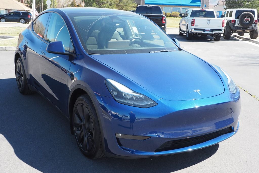 Blue 2025 Tesla Model Y Long Range AWD 1-Speed Automatic Electric Motor Audio memory, Automatic temperature control, Four wheel independent suspension, Front dual zone A/C, HVAC memory, Memory seat, Power driver seat, Power steering, Power windows, Radio: Premium Audio System with 13 Speakers, Rear air conditioning, Speed-sensing steering, Steering wheel memory, Steering wheel mounted A/C controls, Steering wheel mounted audio controls, Traction control.