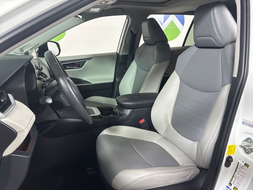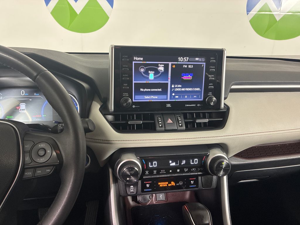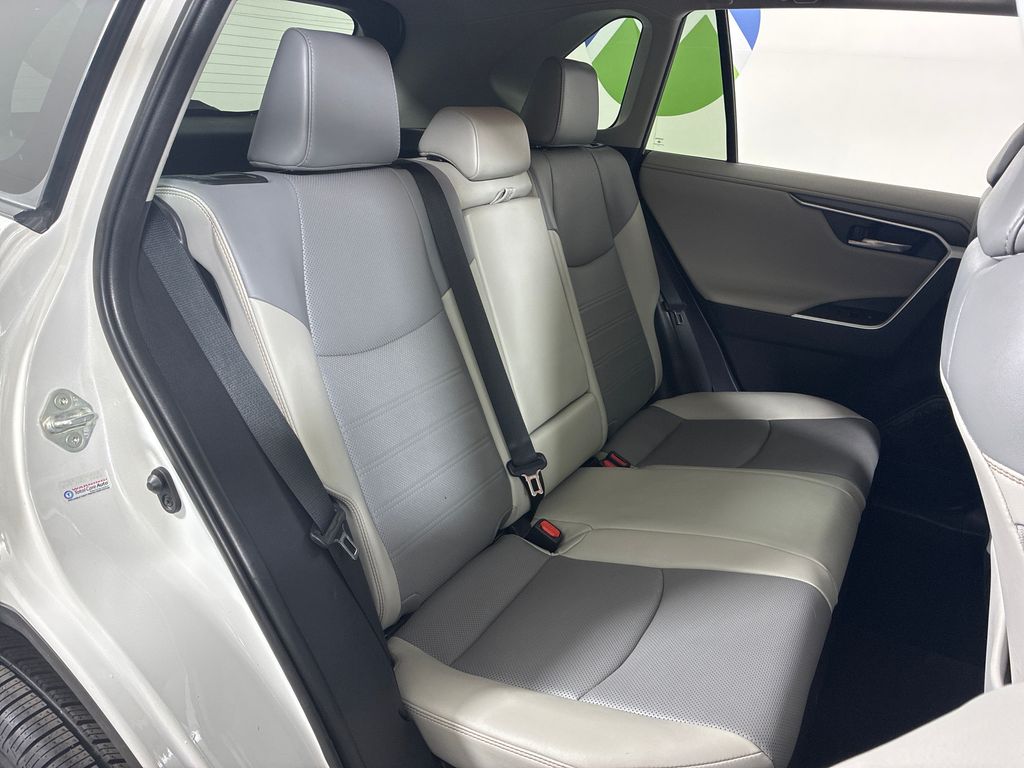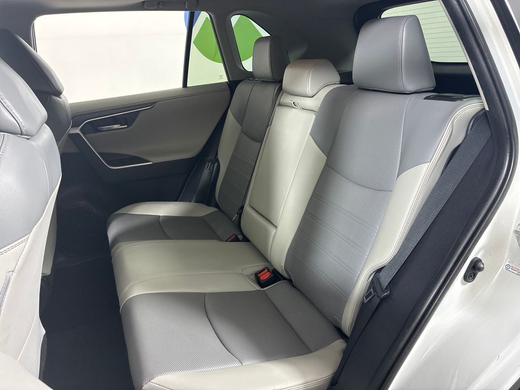 This 2020 White Toyota RAV4 Hybrid Limited AWD is well equipped and includes these features and benefits: 2.5L 4-Cylinder, 11 Speakers, 4-Wheel Disc Brakes, ABS brakes, Air Conditioning, Alloy wheels, AM/FM radio: SiriusXM, Apple CarPlay/Android Auto, Auto High-beam Headlights, Auto-dimming Rear-View mirror, Automatic temperature control, Axle Ratio: TBD, Brake assist, Bumpers: body-color, Delay-off headlights, Driver door bin, Driver vanity mirror, Dual front impact airbags, Dual front side impact airbags, Electronic Stability Control, Emergency communication system: Safety Connect with 1-year trial, Four wheel independent suspension, Front anti-roll bar, Front Bucket Seats, Front Center Armrest, Front dual zone A/C, Front fog lights, Front reading lights, Fully automatic headlights, Garage door transmitter: HomeLink, Heated door mirrors, Heated Front Seats, Heated front seats, Illuminated entry, Knee airbag, Leather Shift Knob, Low tire pressure warning, Memory seat, Navigation System, Occupant sensing airbag, Outside temperature display, Overhead airbag, Overhead console, Panic alarm, Passenger door bin, Passenger vanity mirror, Power door mirrors, Power driver seat, Power Liftgate, Power moonroof, Power steering, Power windows, Radio data system, Radio: Premium Audio w/Dynamic Nav & JBL, Rear anti-roll bar, Rear seat center armrest, Rear window defroster, Rear window wiper, Remote keyless entry, Roof rack: rails only, Security system, SofTex Seat Trim, Speed control, Speed-sensing steering, Split folding rear seat, Spoiler, Steering wheel mounted audio controls, Telescoping steering wheel, Tilt steering wheel, Traction control, Trip computer, Turn signal indicator mirrors, Variably intermittent wipers, and Wheels: 18" x 7.0J Chrome-Finished Aluminum Alloy.
