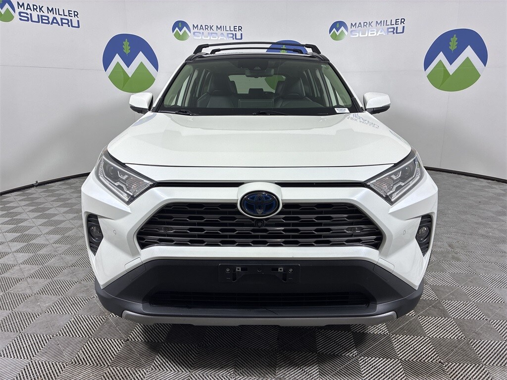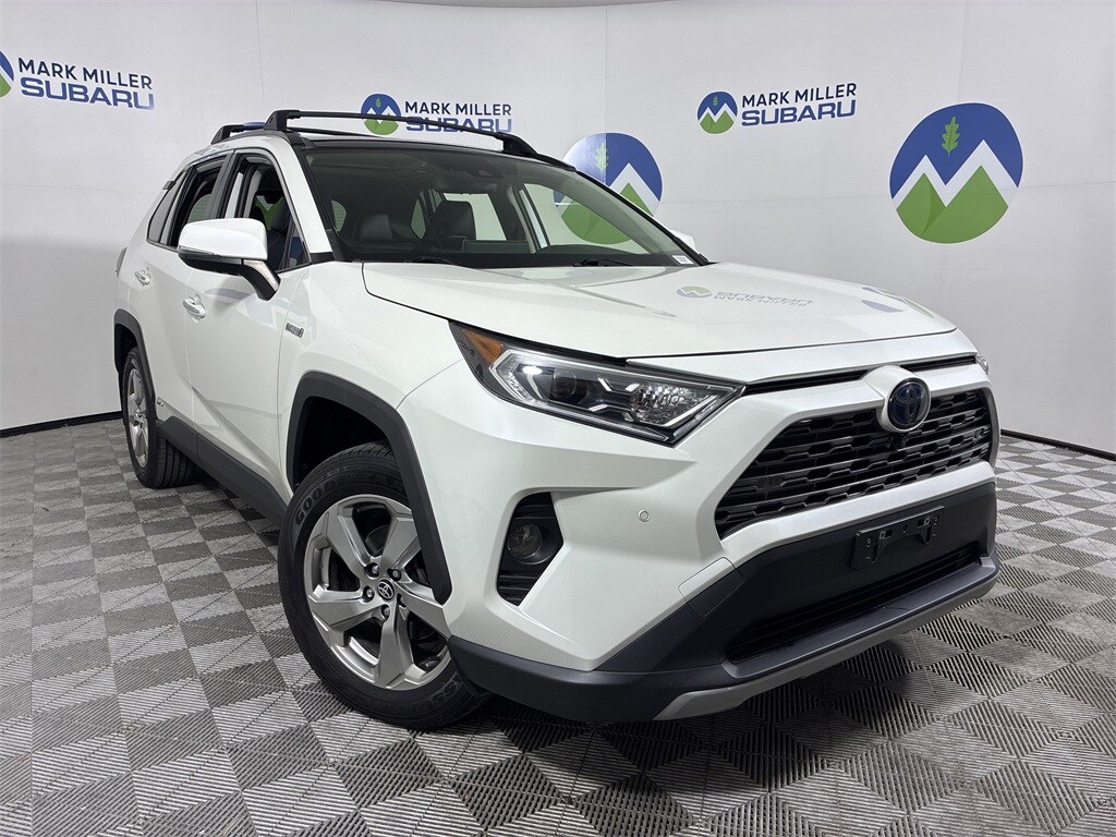 This 2020 White Toyota RAV4 Hybrid Limited AWD is well equipped and includes these features and benefits: 2.5L 4-Cylinder, 11 Speakers, 4-Wheel Disc Brakes, ABS brakes, Air Conditioning, Alloy wheels, AM/FM radio: SiriusXM, Apple CarPlay/Android Auto, Auto High-beam Headlights, Auto-dimming Rear-View mirror, Automatic temperature control, Axle Ratio: TBD, Battery, Brake assist, Bumpers: body-color, Delay-off headlights, Driver door bin, Driver vanity mirror, Dual front impact airbags, Dual front side impact airbags, Electronic Stability Control, Emergency communication system: Safety Connect with 1-year trial, Four wheel independent suspension, Front anti-roll bar, Front Bucket Seats, Front Center Armrest, Front dual zone A/C, Front fog lights, Front reading lights, Fully automatic headlights, Garage door transmitter: HomeLink, Heated door mirrors, Heated Front Seats, Heated front seats, Illuminated entry, Knee airbag, Leather Shift Knob, Low tire pressure warning, Memory seat, Navigation System, Occupant sensing airbag, Outside temperature display, Overhead airbag, Overhead console, Panic alarm, Passenger door bin, Passenger vanity mirror, Power door mirrors, Power driver seat, Power Liftgate, Power moonroof, Power steering, Power windows, Radio data system, Radio: Premium Audio w/Dynamic Nav & JBL, Rear anti-roll bar, Rear seat center armrest, Rear window defroster, Rear window wiper, Remote keyless entry, Roof rack: rails only, Security system, SofTex Seat Trim, Speed control, Speed-sensing steering, Split folding rear seat, Spoiler, Steering wheel mounted audio controls, Telescoping steering wheel, Tilt steering wheel, Traction control, Trip computer, Turn signal indicator mirrors, Variably intermittent wipers, and Wheels: 18" x 7.0J Chrome-Finished Aluminum Alloy.