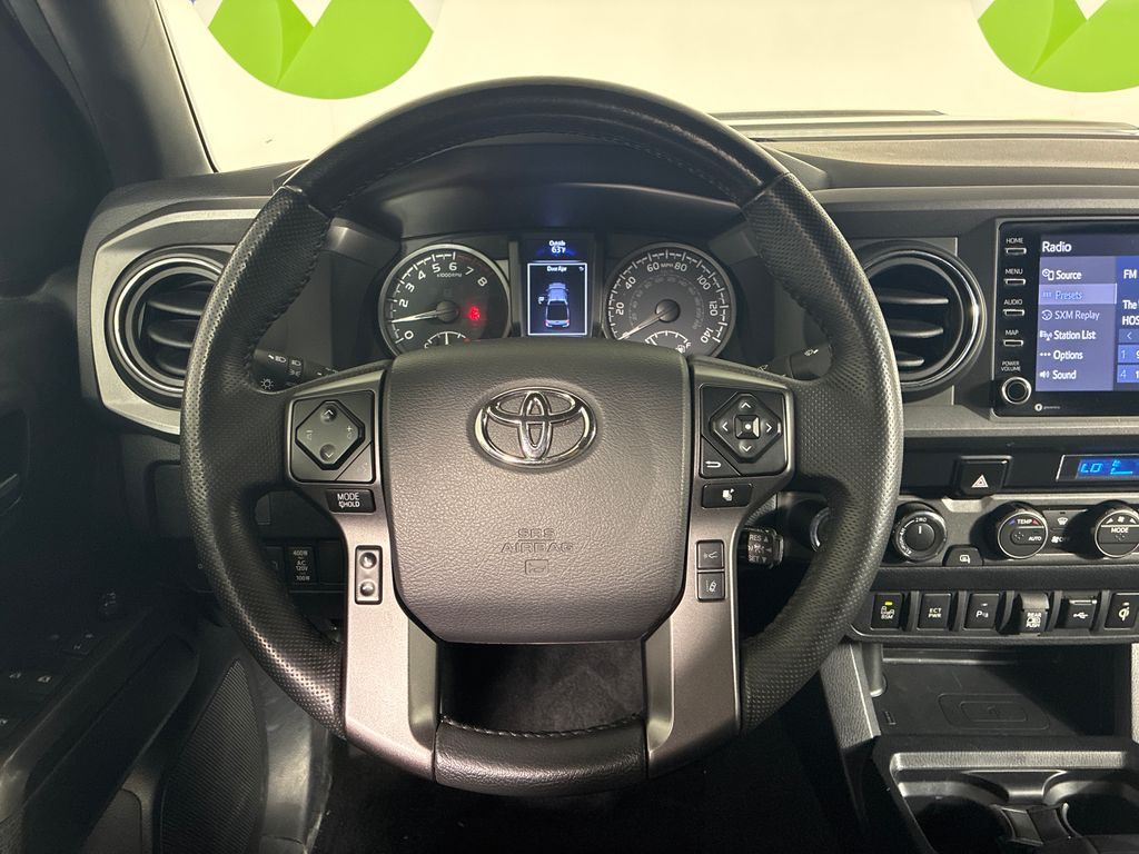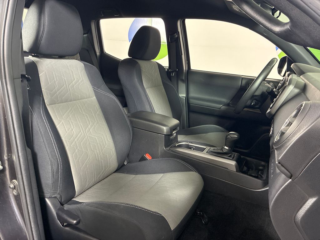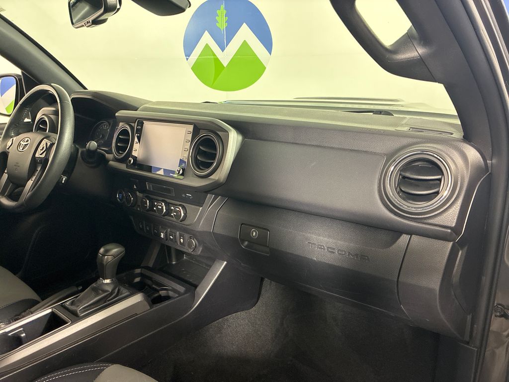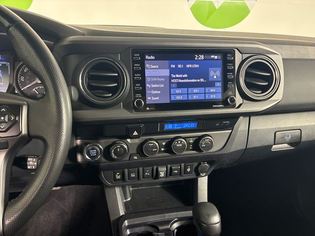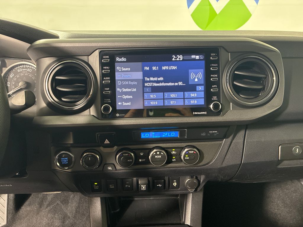 This 2022 Gray Toyota Tacoma TRD Sport 4WD is well equipped and includes these features and benefits: 4WD, ABS brakes, Alloy wheels, Electronic Stability Control, Front dual zone A/C, Heated door mirrors, Illuminated entry, Low tire pressure warning, Remote keyless entry, Traction control, 120V/400W Deck Mounted AC Power, 6 Speakers, Air Conditioning, AM/FM radio: SiriusXM, Anti-whiplash front head restraints, Apple CarPlay/Android Auto, Auto High-beam Headlights, Auto-dimming Rear-View mirror, Auto-Dimming Rearview Mirror w/HomeLink, Automatic temperature control, Brake assist, Bumpers: body-color, Color-Keyed Overfenders, Driver door bin, Dual front impact airbags, Dual front side impact airbags, Emergency communication system: Safety Connect with 1-year trial, Engine Immobilizer, Exterior Parking Camera Rear, Fabric Seat Trim (FD), Front anti-roll bar, Front Bucket Seats, Front Center Armrest, Front fog lights, Front reading lights, Front Seats, Front wheel independent suspension, Garage door transmitter: HomeLink, Knee airbag, Leather Shift Knob, Occupant sensing airbag, Outside temperature display, Overhead airbag, Overhead console, Panic alarm, Passenger door bin, Power door mirrors, Power driver seat, Power Sliding Rear Window w/Privacy Glass, Power steering, Power windows, Radio: AM/FM Radio, Rear step bumper, Security system, Speed control, Speed-sensing steering, Split folding rear seat, Steering wheel mounted audio controls, Tachometer, Telescoping steering wheel, Tilt steering wheel, Trip computer, Turn signal indicator mirrors, Variably intermittent wipers, and Wheels: 17" x 7.5J Machined Alloy.