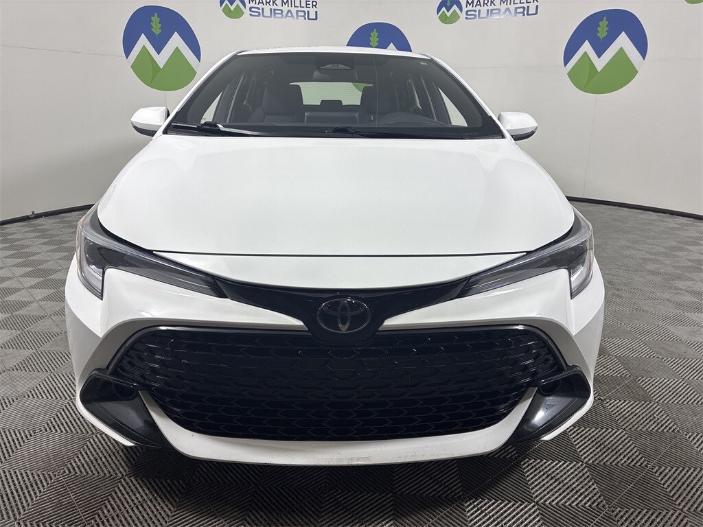 This 2023 White Toyota Corolla Hatchback SE FWD is well equipped and includes these features and benefits: 16" 10-Spoke Aluminum Wheels, 4-Wheel Disc Brakes, 6 Speakers, ABS brakes, Air Conditioning, Alloy wheels, AM/FM radio: SiriusXM, Auto High-beam Headlights, Automatic temperature control, Brake assist, Bumpers: body-color, Compass, Delay-off headlights, Driver door bin, Driver vanity mirror, Dual front impact airbags, Dual front side impact airbags, Electronic Stability Control, Emergency communication system: Safety Connect (up to 10-year trial subscription), Exterior Parking Camera Rear, Fabric Seat Trim, Four wheel independent suspension, Front anti-roll bar, Front Bucket Seats, Front Center Armrest, Front reading lights, Heated door mirrors, Illuminated entry, Knee airbag, Leather Shift Knob, Leather steering wheel, Low tire pressure warning, Occupant sensing airbag, Outside temperature display, Overhead airbag, Overhead console, Panic alarm, Passenger door bin, Passenger vanity mirror, Power door mirrors, Power steering, Power windows, Radio data system, Radio: 8" Toyota Audio Multimedia, Rear anti-roll bar, Rear seat center armrest, Rear side impact airbag, Rear window defroster, Rear window wiper, Remote keyless entry, Security system, Speed control, Speed-sensing steering, Split folding rear seat, Spoiler, Sport Front Seats, Steering wheel mounted audio controls, Tachometer, Telescoping steering wheel, Tilt steering wheel, Traction control, Trip computer, Turn signal indicator mirrors, and Variably intermittent wipers.