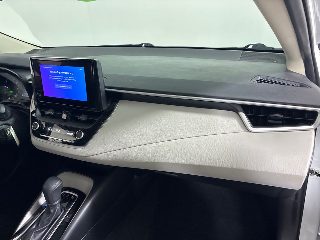 This 2023 White Toyota Corolla Hybrid LE AWD is well equipped and includes these features and benefits: 1.8L DOHC 16V VVT, ABS brakes, Active Cruise Control, Electronic Stability Control, Illuminated entry, Low tire pressure warning, Remote keyless entry, Traction control, 4-Wheel Disc Brakes, 6 Speakers, Air Conditioning, AM/FM radio: SiriusXM, Auto High-beam Headlights, Automatic temperature control, Brake assist, Bumpers: body-color, Delay-off headlights, Driver door bin, Driver vanity mirror, Dual front impact airbags, Dual front side impact airbags, Emergency communication system: Safety Connect (up to 10-year trial subscription), Exterior Parking Camera Rear, Four wheel independent suspension, Front anti-roll bar, Front Bucket Seats, Front Center Armrest, Front reading lights, Fully automatic headlights, Knee airbag, Occupant sensing airbag, Outside temperature display, Overhead airbag, Panic alarm, Passenger door bin, Passenger vanity mirror, Power door mirrors, Power steering, Power windows, Premium Fabric Seat Trim, Radio data system, Radio: 8" Toyota Audio Multimedia, Rear anti-roll bar, Rear seat center armrest, Rear side impact airbag, Rear window defroster, Speed control, Split folding rear seat, Steering wheel mounted audio controls, Tachometer, Telescoping steering wheel, Tilt steering wheel, Trip computer, Variably intermittent wipers, and Wheels: 16" Wide Vent Steel.