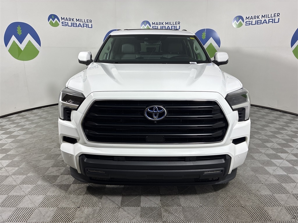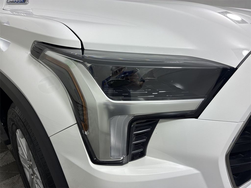 This 2023 Ice Cap Toyota Sequoia SR5 4WD is well equipped and includes these features and benefits: V6 Hybrid, 10-Speed Automatic, 4WD, ABS brakes, Active Cruise Control, Alloy wheels, Electronic Stability Control, Front dual zone A/C, Heated door mirrors, Heated Front Seats, Heated front seats, Illuminated entry, Low tire pressure warning, Power moonroof, Remote keyless entry, Traction control, 3.31 Axle Ratio, 3rd row seats: split-bench, 4-Wheel Disc Brakes, 8 Speakers, Air Conditioning, AM/FM radio: SiriusXM, Anti-whiplash front head restraints, Apple CarPlay/Android Auto, Auto High-beam Headlights, Auto-dimming door mirrors, Auto-dimming Rear-View mirror, Automatic temperature control, Brake assist, Bumpers: body-color, Delay-off headlights, Driver door bin, Driver vanity mirror, Dual front impact airbags, Dual front side impact airbags, Emergency communication system: Safety Connect (10-year trial), Fabric Seat Trim, Front anti-roll bar, Front Bucket Seats, Front Center Armrest w/Storage, Front fog lights, Front reading lights, Front wheel independent suspension, Fully automatic headlights, Garage door transmitter, Headlight cleaning, Knee airbag, Leather Shift Knob, Leather steering wheel, Occupant sensing airbag, Outside temperature display, Overhead airbag, Overhead console, Panic alarm, Passenger door bin, Passenger vanity mirror, Power door mirrors, Power driver seat, Power passenger seat, Power steering, Power windows, Radio: Toyota Multimedia w/8" Display, Rear air conditioning, Rear reading lights, Rear seat center armrest, Rear window defroster, Rear window wiper, Reclining 3rd row seat, Security system, Speed control, Speed-sensing steering, Split folding rear seat, Spoiler, Steering wheel mounted audio controls, Tachometer, Telescoping steering wheel, Tilt steering wheel, Trip computer, Turn signal indicator mirrors, Variably intermittent wipers, Voltmeter, and Wheels: 18" Styled-Alloy.