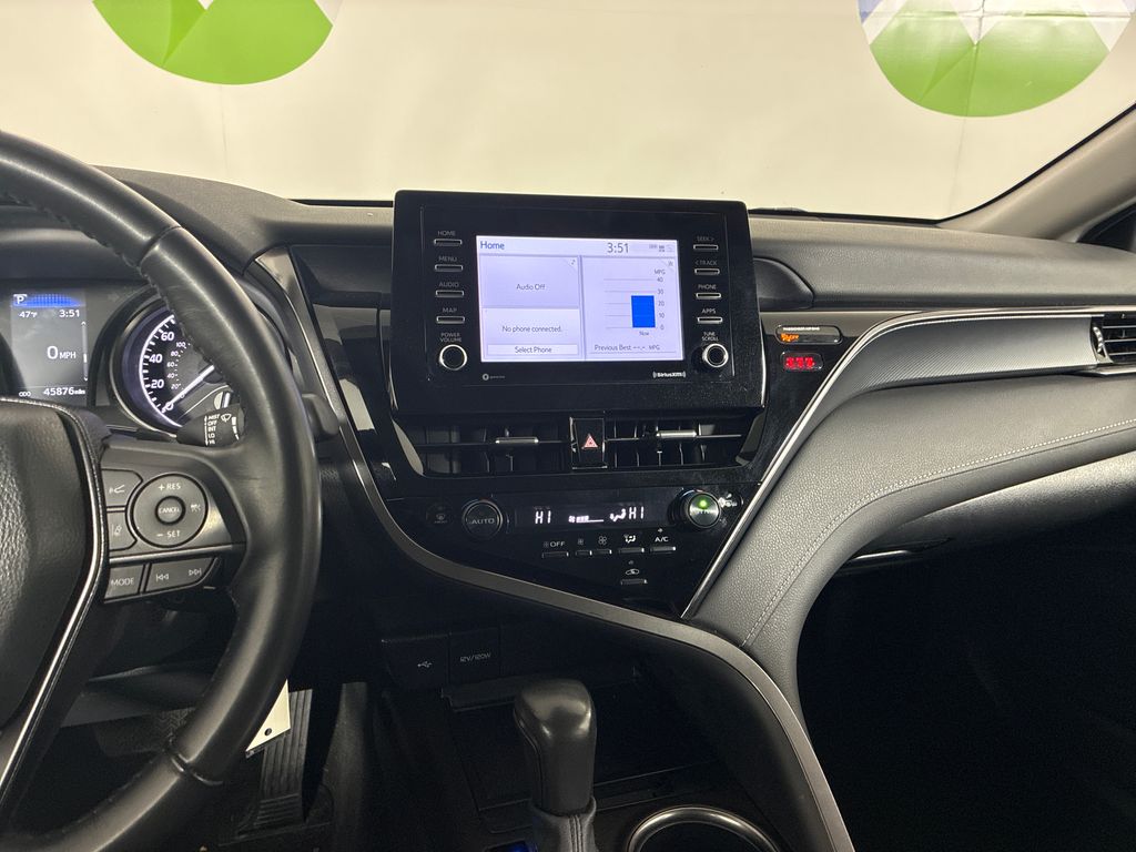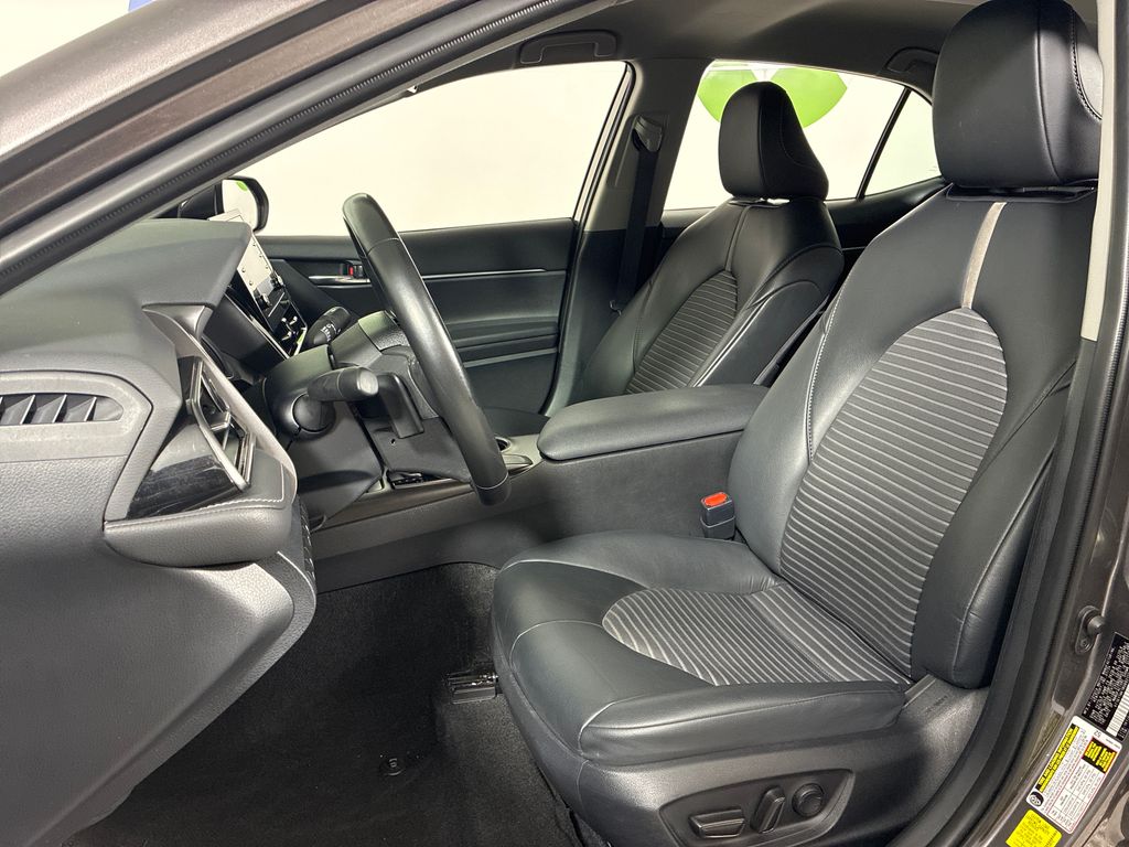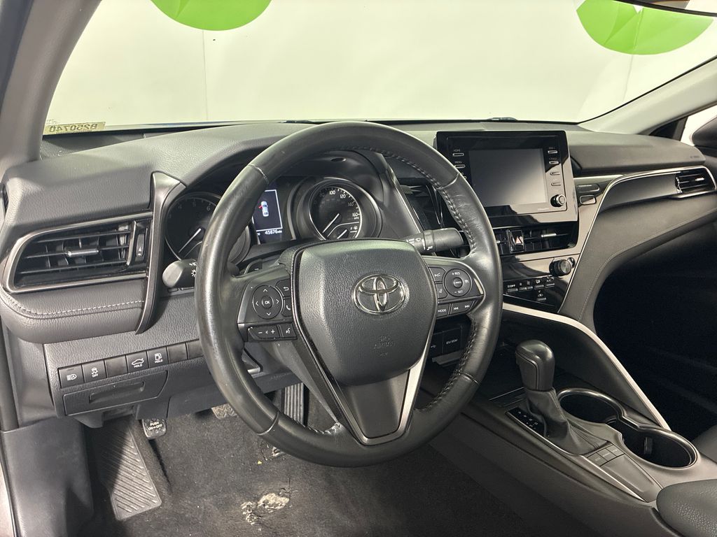 This 2024 Gray Toyota Camry SE FWD is well equipped and includes these features and benefits: Ash w/Perforated Leather Seat Trim, 18" x 8J Alloy Wheels, 4-Wheel Disc Brakes, 6 Speakers, ABS brakes, Air Conditioning, Alloy wheels, AM/FM radio: SiriusXM, Apple CarPlay/Android Auto, Auto High-beam Headlights, Automatic temperature control, Brake assist, Bumpers: body-color, Delay-off headlights, Driver door bin, Driver vanity mirror, Dual front impact airbags, Dual front side impact airbags, Electronic Stability Control, Emergency communication system: Safety Connect (1-year trial), Exterior Parking Camera Rear, Four wheel independent suspension, Front anti-roll bar, Front Bucket Seats, Front Center Armrest, Front dual zone A/C, Front reading lights, Fully automatic headlights, Heated door mirrors, Illuminated entry, Knee airbag, Leather steering wheel, Low tire pressure warning, Occupant sensing airbag, Outside temperature display, Overhead airbag, Overhead console, Panic alarm, Passenger door bin, Passenger vanity mirror, Power door mirrors, Power driver seat, Power steering, Power windows, Radio data system, Radio: Audio, Rear anti-roll bar, Rear seat center armrest, Rear side impact airbag, Rear window defroster, Remote keyless entry, Security system, Speed control, Speed-sensing steering, Split folding rear seat, Spoiler, Sport SofTex Seat Trim w/Fabric Inserts, Steering wheel mounted audio controls, Tachometer, Telescoping steering wheel, Tilt steering wheel, Traction control, Trip computer, Turn signal indicator mirrors, and Variably intermittent wipers.