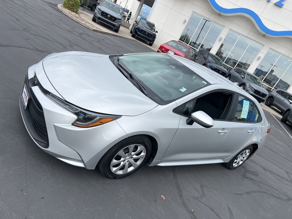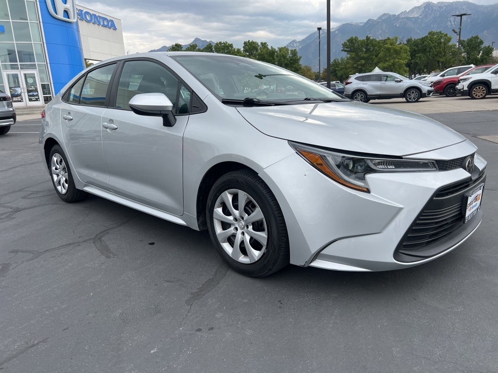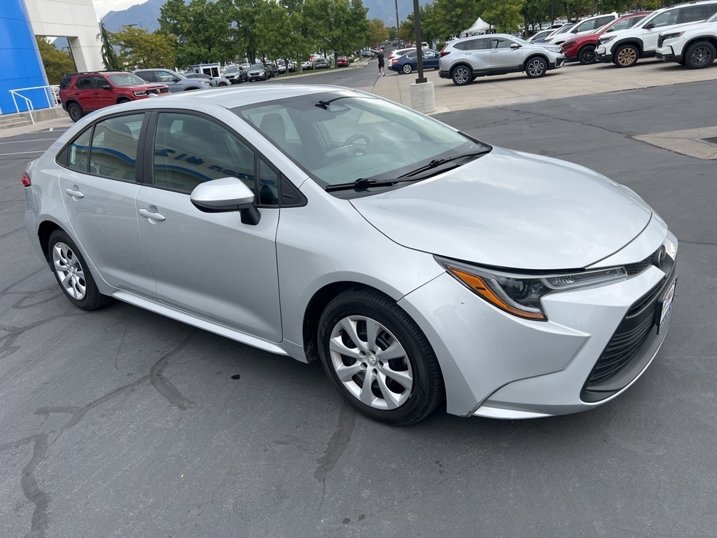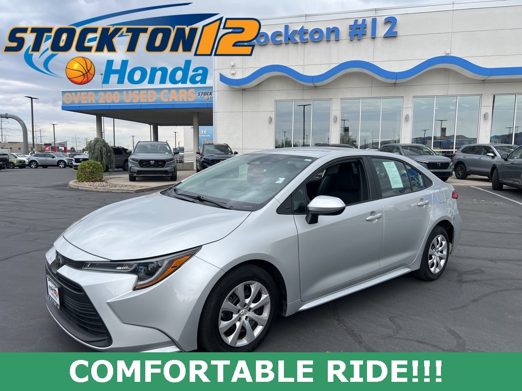 Corolla LE, 4D Sedan, 2.0L I4 DOHC 16V, CVT, FWD, Silver, Black Cloth, 16" Steel Wheels w/Covers, 4-Wheel Disc Brakes, 6 Speakers, ABS brakes, Air Conditioning, AM/FM radio: SiriusXM, Auto High-beam Headlights, Automatic temperature control, Brake assist, Bumpers: body-color, Delay-off headlights, Driver door bin, Driver vanity mirror, Dual front impact airbags, Dual front side impact airbags, Electronic Stability Control, Emergency communication system: Safety Connect (up to 10-year trial subscription), Exterior Parking Camera Rear, Fabric Seat Trim, Front anti-roll bar, Front Bucket Seats, Front Center Armrest, Front reading lights, Front wheel independent suspension, Fully automatic headlights, Illuminated entry, Knee airbag, Low tire pressure warning, Occupant sensing airbag, Outside temperature display, Overhead airbag, Panic alarm, Passenger door bin, Passenger vanity mirror, Power door mirrors, Power steering, Power windows, Radio data system, Radio: 8" Toyota Audio Multimedia, Rear anti-roll bar, Rear seat center armrest, Rear side impact airbag, Rear window defroster, Remote keyless entry, Speed control, Split folding rear seat, Steering wheel mounted audio controls, Tachometer, Telescoping steering wheel, Tilt steering wheel, Traction control, Trip computer, Corolla LE, 4D Sedan, 2.0L I4 DOHC 16V, CVT, FWD, Silver, Black Cloth.