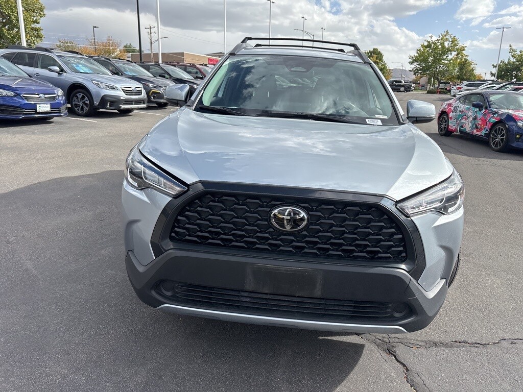 This 2024 Silver Toyota Corolla Cross LE FWD is well equipped and includes these features and benefits: 17" Silver Alloy Wheels, 4-Wheel Disc Brakes, 4.014 Axle Ratio, 6 Speakers, ABS brakes, Air Conditioning, Alloy wheels, AM/FM radio: SiriusXM, Auto High-beam Headlights, Automatic temperature control, Brake assist, Bumpers: body-color, Delay-off headlights, Driver door bin, Driver vanity mirror, Dual front impact airbags, Dual front side impact airbags, Electronic Stability Control, Emergency communication system: Safety Connect (10-year trial), Exterior Parking Camera Rear, Fabric Seat Trim, Front anti-roll bar, Front Bucket Seats, Front Center Armrest, Front reading lights, Front wheel independent suspension, Fully automatic headlights, Heated door mirrors, Illuminated entry, Knee airbag, Leather steering wheel, Low tire pressure warning, Occupant sensing airbag, Outside temperature display, Overhead airbag, Panic alarm, Passenger door bin, Passenger vanity mirror, Power door mirrors, Power steering, Power windows, Radio data system, Radio: 8" Touch-Screen Display Audio, Rear anti-roll bar, Rear side impact airbag, Rear window defroster, Rear window wiper, Remote keyless entry, Speed control, Split folding rear seat, Spoiler, Steering wheel mounted audio controls, Tachometer, Telescoping steering wheel, Tilt steering wheel, Traction control, Trip computer, Turn signal indicator mirrors, and Variably intermittent wipers.