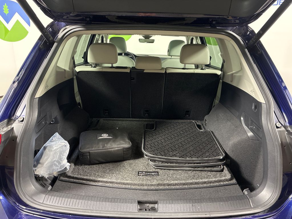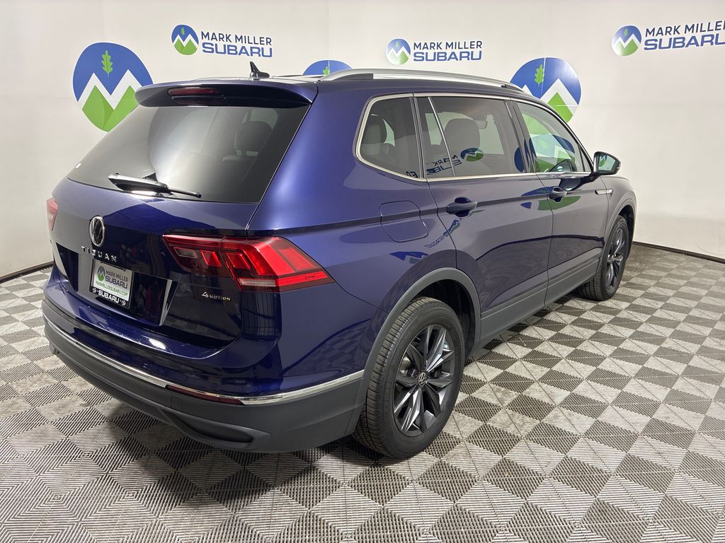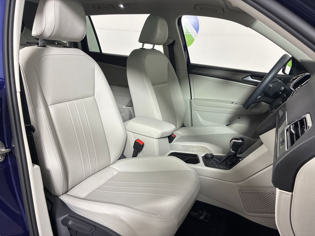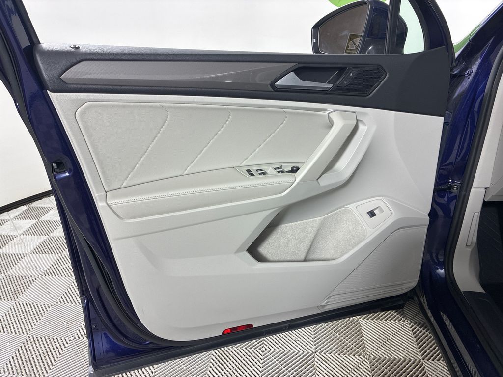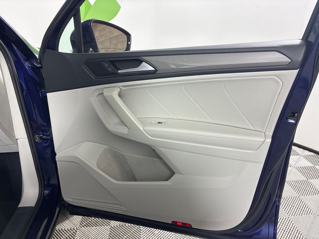 This 2022 Blue Volkswagen Tiguan 2.0T SE AWD is well equipped and includes these features and benefits: AWD, 3.33 Axle Ratio, 4-Wheel Disc Brakes, 4-Wheel Independent Suspension, 6 Speakers, ABS brakes, Air Conditioning, Alloy wheels, AM/FM radio: SiriusXM with 360L, Auto-dimming Rear-View mirror, Automatic temperature control, Brake assist, Bumpers: body-color, Compass, Delay-off headlights, Driver door bin, Driver vanity mirror, Dual front impact airbags, Dual front side impact airbags, Electronic Stability Control, Emergency communication system: Car-Net, Exterior Parking Camera Rear, Four wheel independent suspension, Front anti-roll bar, Front Bucket Seats, Front Center Armrest, Front dual zone A/C, Front reading lights, Fully automatic headlights, Heated door mirrors, Heated Front Comfort Seats, Heated front seats, Illuminated entry, Leather Shift Knob, Low tire pressure warning, Occupant sensing airbag, Outside temperature display, Overhead airbag, Overhead console, Panic alarm, Passenger door bin, Passenger vanity mirror, Perforated V-Tex Leatherette Seating Surfaces, Power door mirrors, Power driver seat, Power Liftgate, Power steering, Power windows, Radio data system, Radio: MIB3 Composition Media AM/FM/HD, Rain sensing wipers, Rear anti-roll bar, Rear reading lights, Rear seat center armrest, Rear window defroster, Rear window wiper, Remote keyless entry, Roof rack: rails only, Security system, Speed control, Speed-sensing steering, Split folding rear seat, Spoiler, Steering wheel mounted audio controls, Tachometer, Telescoping steering wheel, Tilt steering wheel, Traction control, Trip computer, Turn signal indicator mirrors, Variably intermittent wipers, and Wheels: 18" Dark Graphite 10-Spoke Alloy.