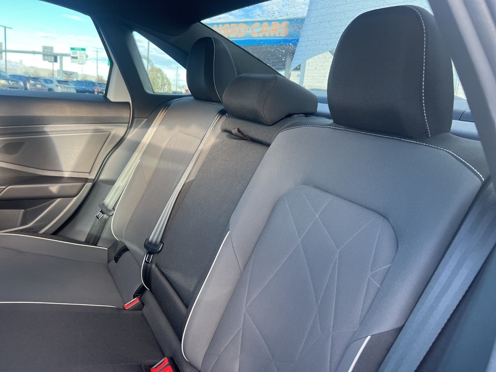 Jetta 1.5T Sport, 4D Sedan, 1.5L I-4 DI DOHC Turbocharged, 8-Speed Automatic with Tiptronic, FWD, Titan Black Cloth, 4 Speakers, 4-Wheel Disc Brakes, ABS brakes, Active Blind Spot Monitor, Air Conditioning, Alloy wheels, Auto-dimming Rear-View mirror, Automatic temperature control, Brake assist, Bumpers: body-color, Cloth Seat Trim, Delay-off headlights, Driver door bin, Driver vanity mirror, Dual front impact airbags, Dual front side impact airbags, Electronic Stability Control, Emergency communication system: VW Car-Net Safe & Secure 5-year, Exterior Parking Camera Rear, Front anti-roll bar, Front Bucket Seats, Front Center Armrest, Front dual zone A/C, Front wheel independent suspension, Fully automatic headlights, Heated door mirrors, Heated Front Seats, Heated front seats, Illuminated entry, Leather Shift Knob, Leather steering wheel, Low tire pressure warning, Occupant sensing airbag, Outside temperature display, Overhead airbag, Overhead console, Panic alarm, Passenger door bin, Passenger vanity mirror, Power door mirrors, Power steering, Power windows, Radio data system, Radio: MIB3 Composition Color w/8" Touchscreen, Rain sensing wipers, Rear anti-roll bar, Rear reading lights, Rear seat center armrest, Rear window defroster, Remote keyless entry, Speed control, Speed-sensing steering, Split folding rear seat, Steering wheel mounted audio controls, Tachometer, Telescoping steering wheel, Tilt steering wheel, Traction control, Trip computer, Variably intermittent wipers, Wheels: 17" 2-Tone Machined Alloy, Jetta 1.5T Sport, 4D Sedan, 1.5L I-4 DI DOHC Turbocharged, 8-Speed Automatic with Tiptronic, FWD, Titan Black Cloth.