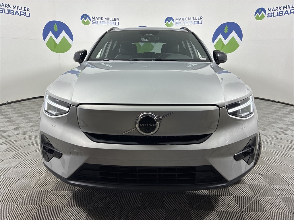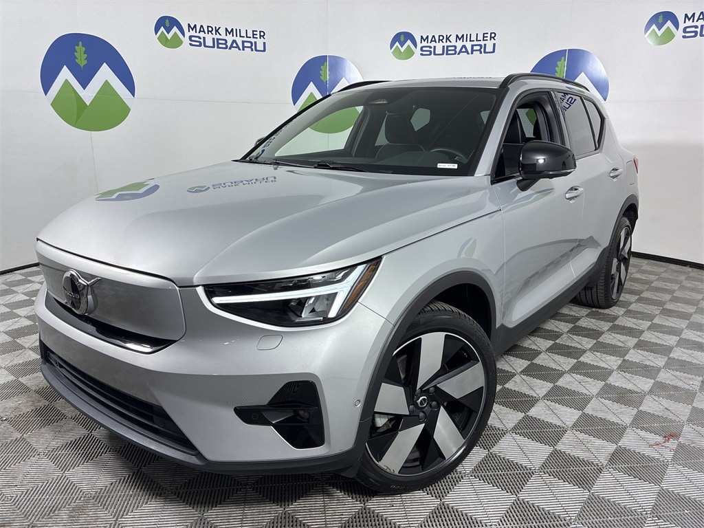 This 2023 Silver Volvo XC40 Recharge Pure Electric Ultimate AWD is well equipped and includes these features and benefits: Internet access capable: Digital Services Package w/ 4 Year Subscription, 13 Speakers, 4-Wheel Disc Brakes, ABS brakes, Air Conditioning, Alloy wheels, Apple CarPlay, Audio memory, Auto High-beam Headlights, Auto-dimming door mirrors, Auto-dimming Rear-View mirror, Automatic temperature control, Brake assist, Bumpers: body-color, Connect Suede Textile/Microtech Upholstery, Delay-off headlights, Driver door bin, Driver vanity mirror, Dual front impact airbags, Dual front side impact airbags, Electronic Stability Control, Emergency communication system, Exterior Parking Camera Rear, Four wheel independent suspension, Front anti-roll bar, Front Bucket Seats, Front Center Armrest, Front dual zone A/C, Front fog lights, Front reading lights, Fully automatic headlights, Garage door transmitter: HomeLink, harman/kardon® Speakers, Headlight cleaning, Heated door mirrors, Heated Front Seats, Heated front seats, Heated rear seats, Heated steering wheel, HVAC memory, Illuminated entry, Knee airbag, Leather Shift Knob, Low tire pressure warning, Memory seat, Navigation system: Sensus Navigation Pro, Occupant sensing airbag, Outside temperature display, Overhead airbag, Overhead console, Panic alarm, Passenger door bin, Passenger vanity mirror, Power door mirrors, Power driver seat, Power Liftgate, Power moonroof, Power passenger seat, Power steering, Power windows, Radio data system, Radio: harman/kardon Premium Audio System, Rain sensing wipers, Rear anti-roll bar, Rear fog lights, Rear reading lights, Rear seat center armrest, Rear window defroster, Rear window wiper, Remote keyless entry, Security system, Speed control, Speed-sensing steering, Split folding rear seat, Spoiler, Steering wheel mounted audio controls, Telescoping steering wheel, Tilt steering wheel, Traction control, Trip computer, Turn signal indicator mirrors, Variably intermittent wipers, and Wheels: 20" 5-V Spoke Matte Graphite Diamond Cut Alloy.